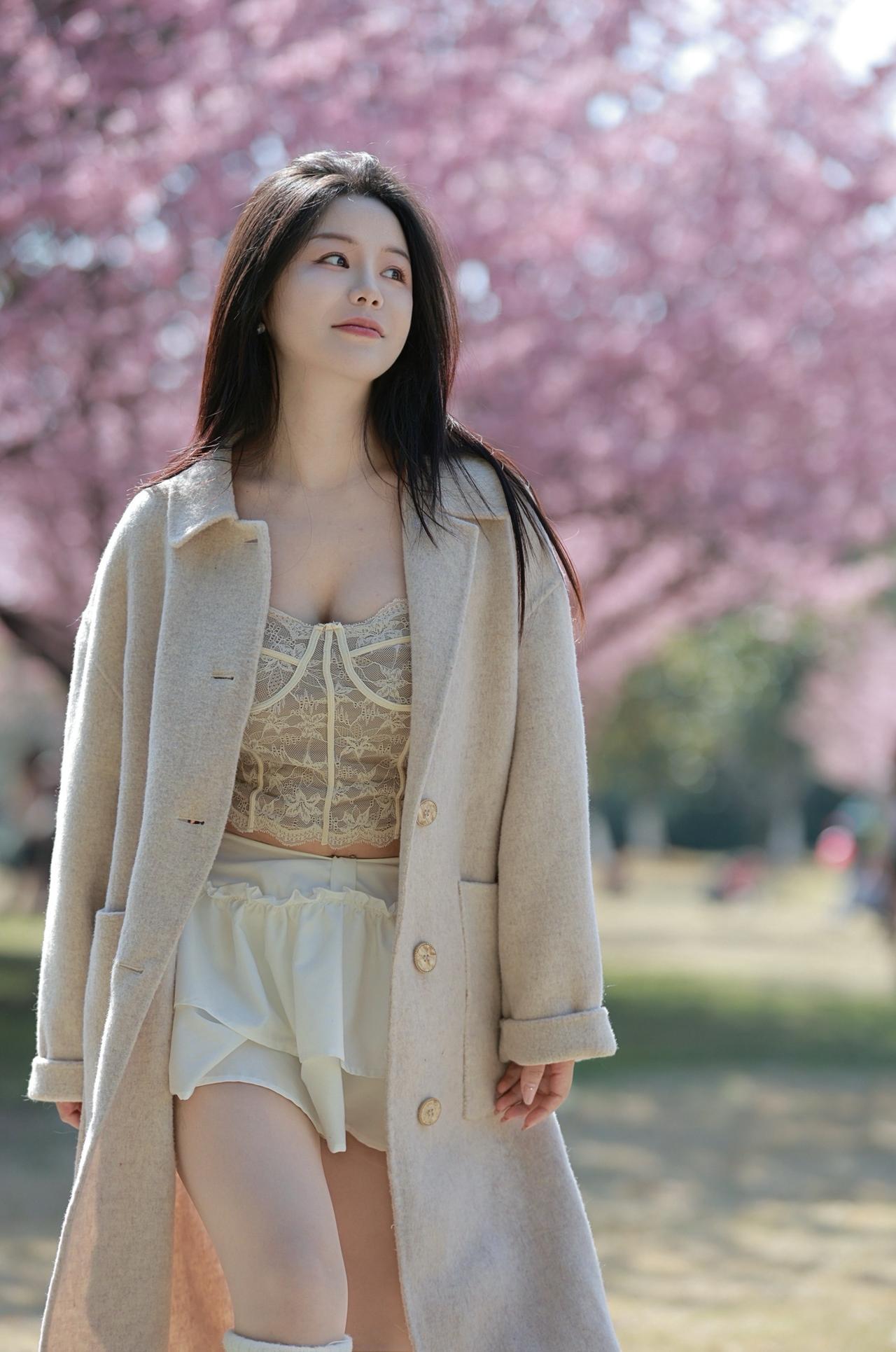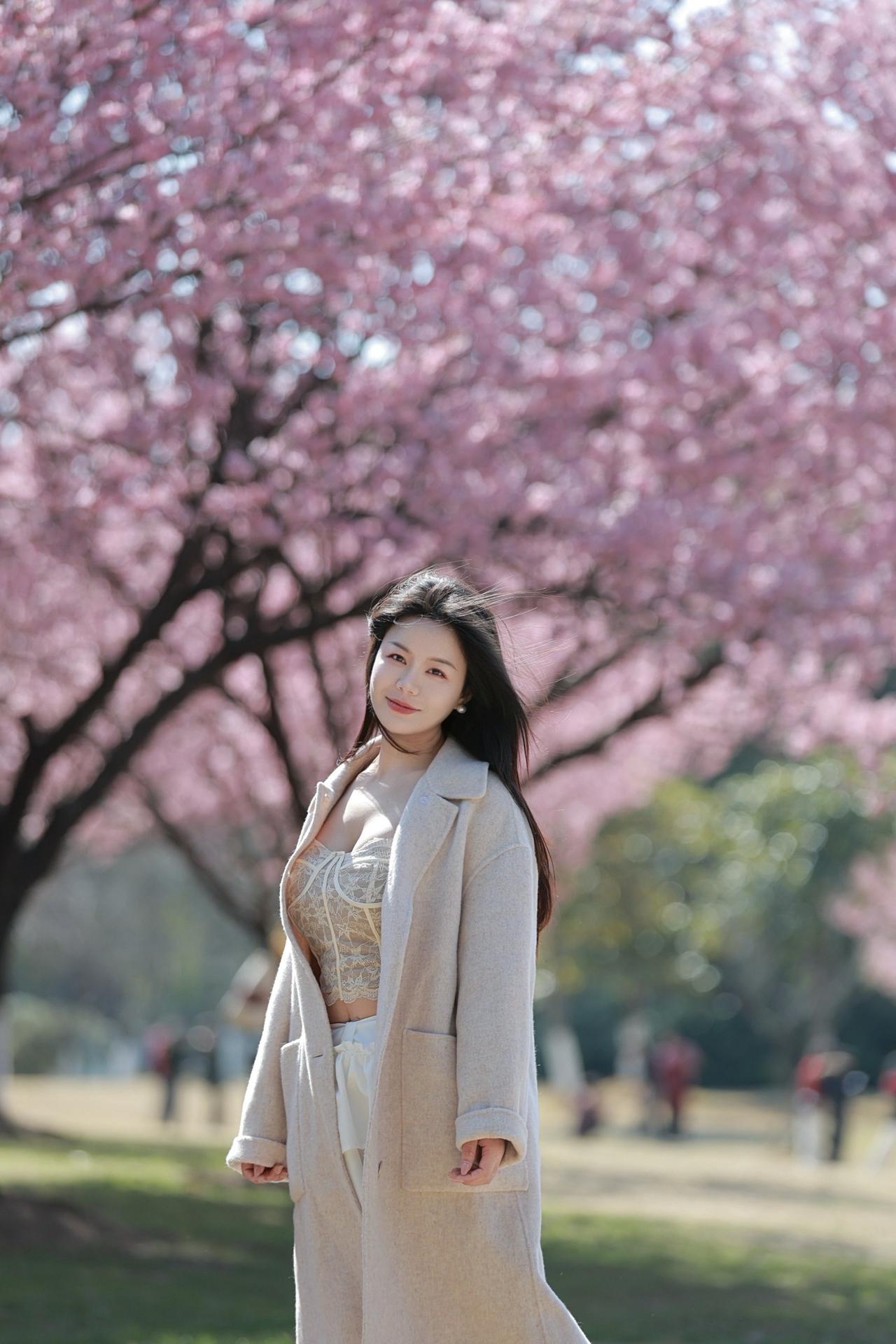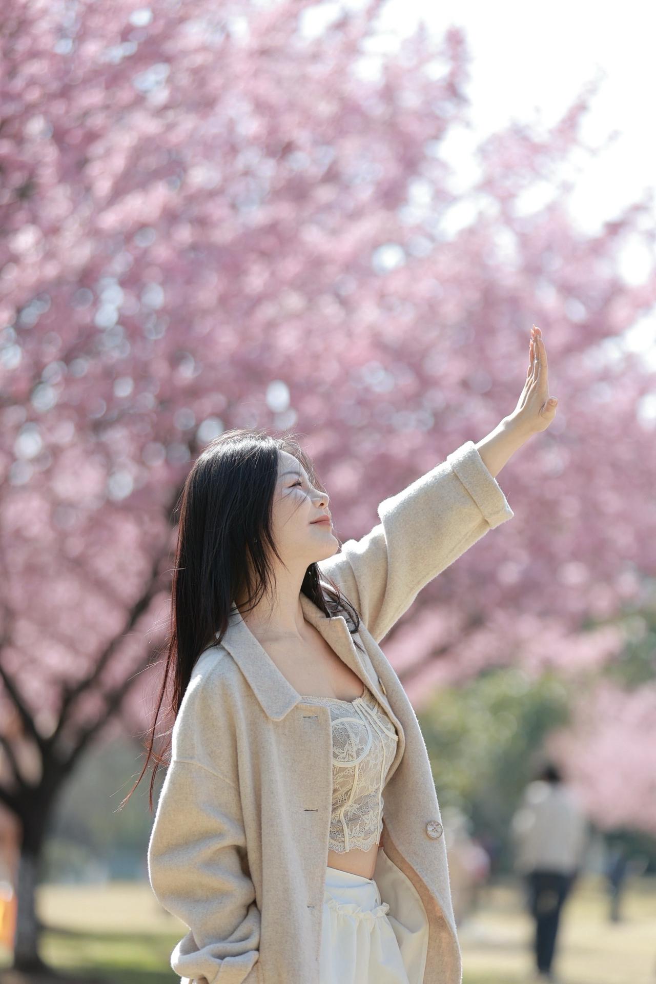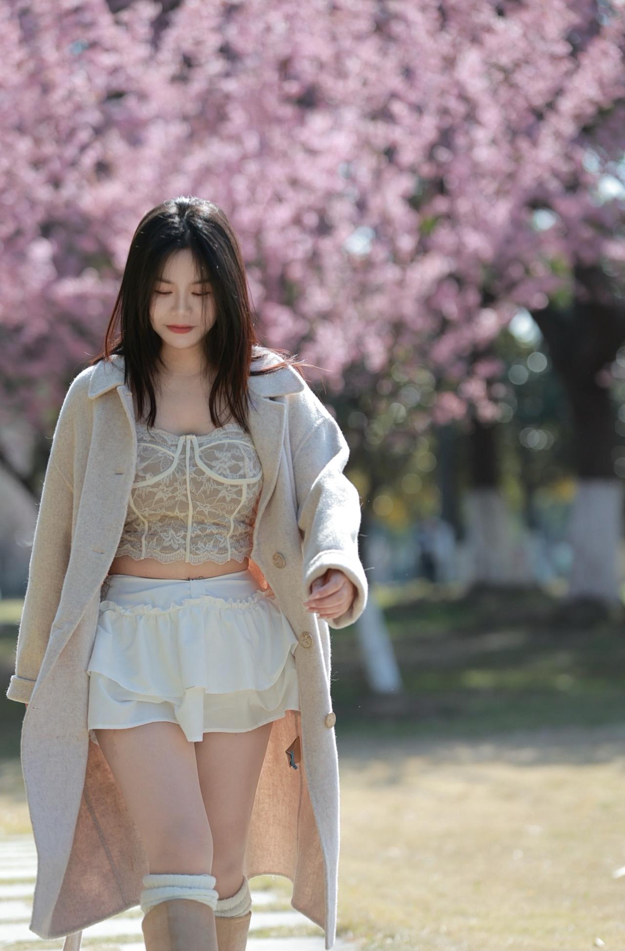 樱花树下一站,就像发张春天的照片。樱花 日系写真 摄影 粉色穿搭和春日的适配度