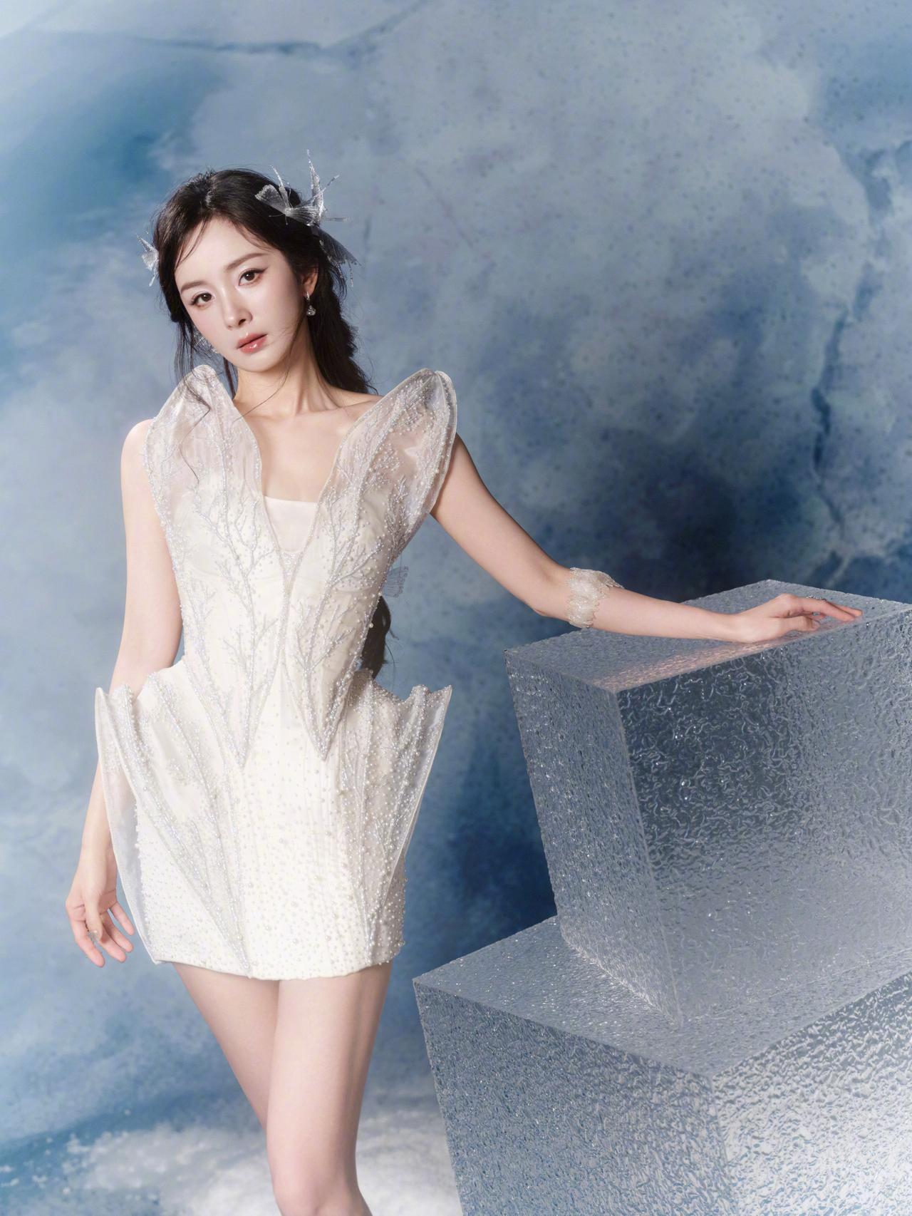 杨幂cos冰雪女神,狐狸魅眼被洁白衬托更显魅惑杨幂 20251026