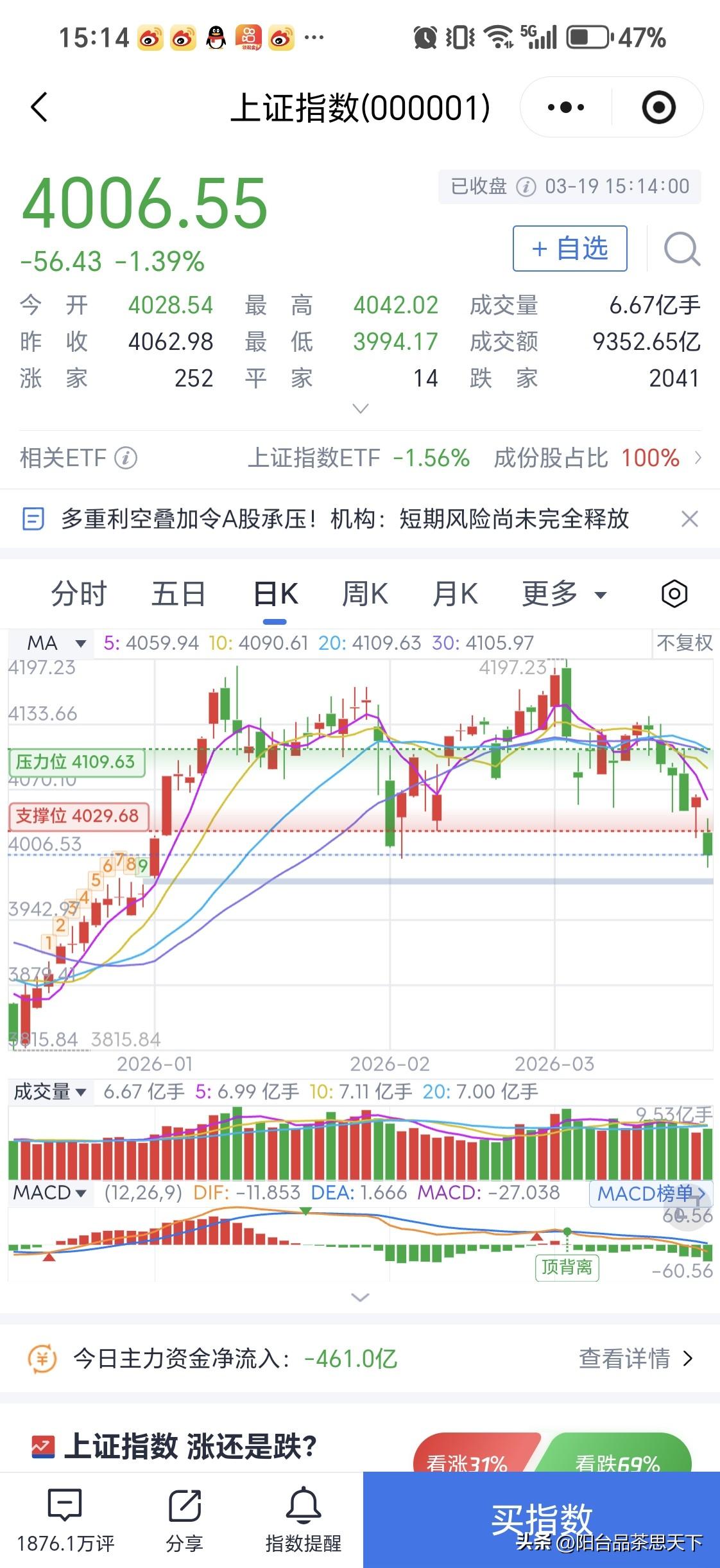 A股遭遇黑色星期四 上证中途跌破4000点大关,那么指数到底了吗? 笔者肤浅的故事经验来说,即使没到底,也非常接近了! A股会出现m头吗?而做一个完整的四浪结构嘛,个人觉得这种可能性不高! 大家怎么看? 害我昨天成功预测了今天的行情,是不是有一点经验呢? 大盘分析行情 大盘要跌吗 股市收盘解析 大盘股下跌 A股波动风险 大盘a股 大盘收盘