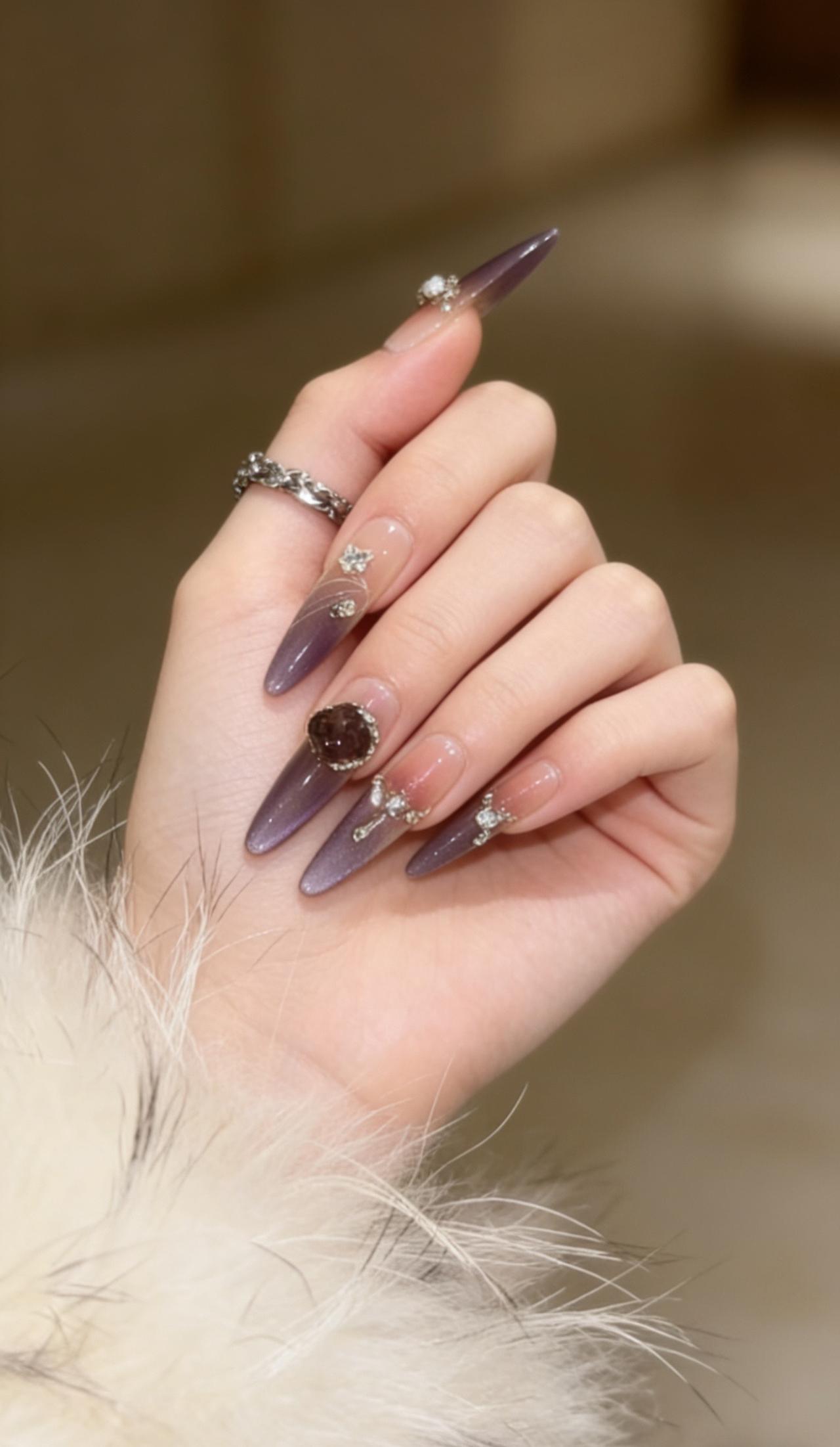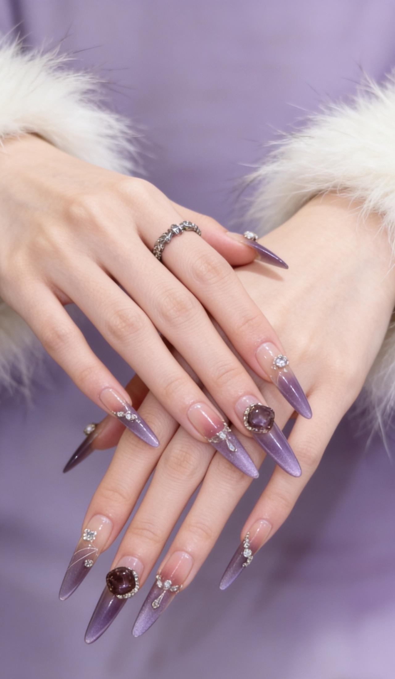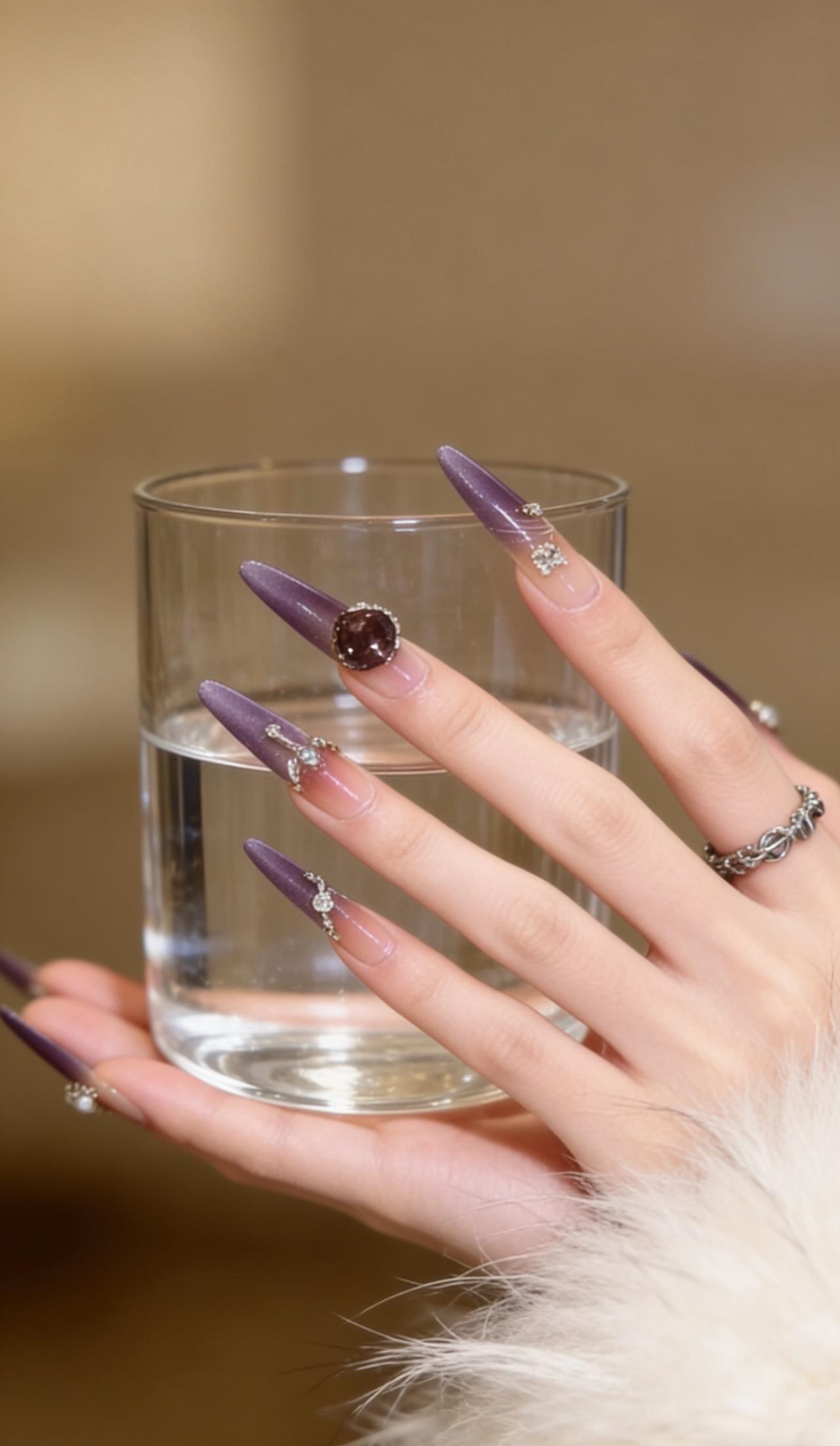 美甲分享美甲分享 爆闪美甲 美甲延长甲 紫色美甲款式