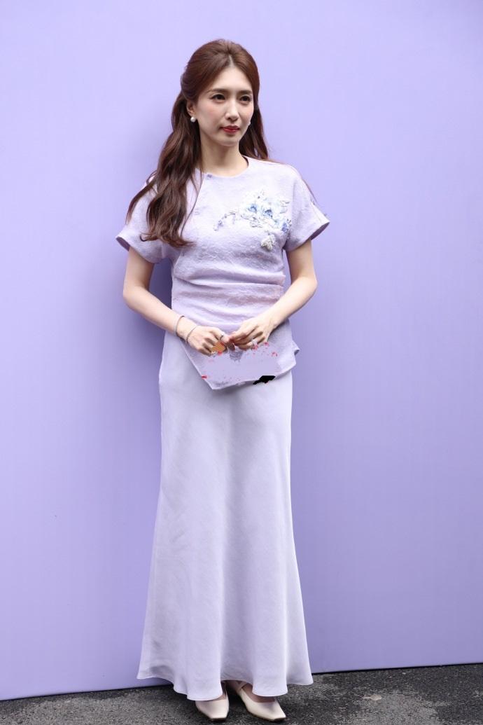 今天江疏影在出席时尚活动的时候搭配了一身紫色的衣服,看上去年轻又靓丽。 江疏影上身穿漂亮的绣花T恤,下身搭配浅紫色的裙子,凸显出了一种柔和之美。 她穿的这件上衣是不对称设计的,能够展现出几何风情,还非常的有古典韵味。 江疏影脚踩白色的浅口鞋,看起来年轻又迷人,还很有大牌明星风采,确实是特别的漂亮。 她留着超美的披肩长发,还画着柔和的妆容,带给人一种知性优雅的感觉,不得不说江疏影也算是个不老女神啊。