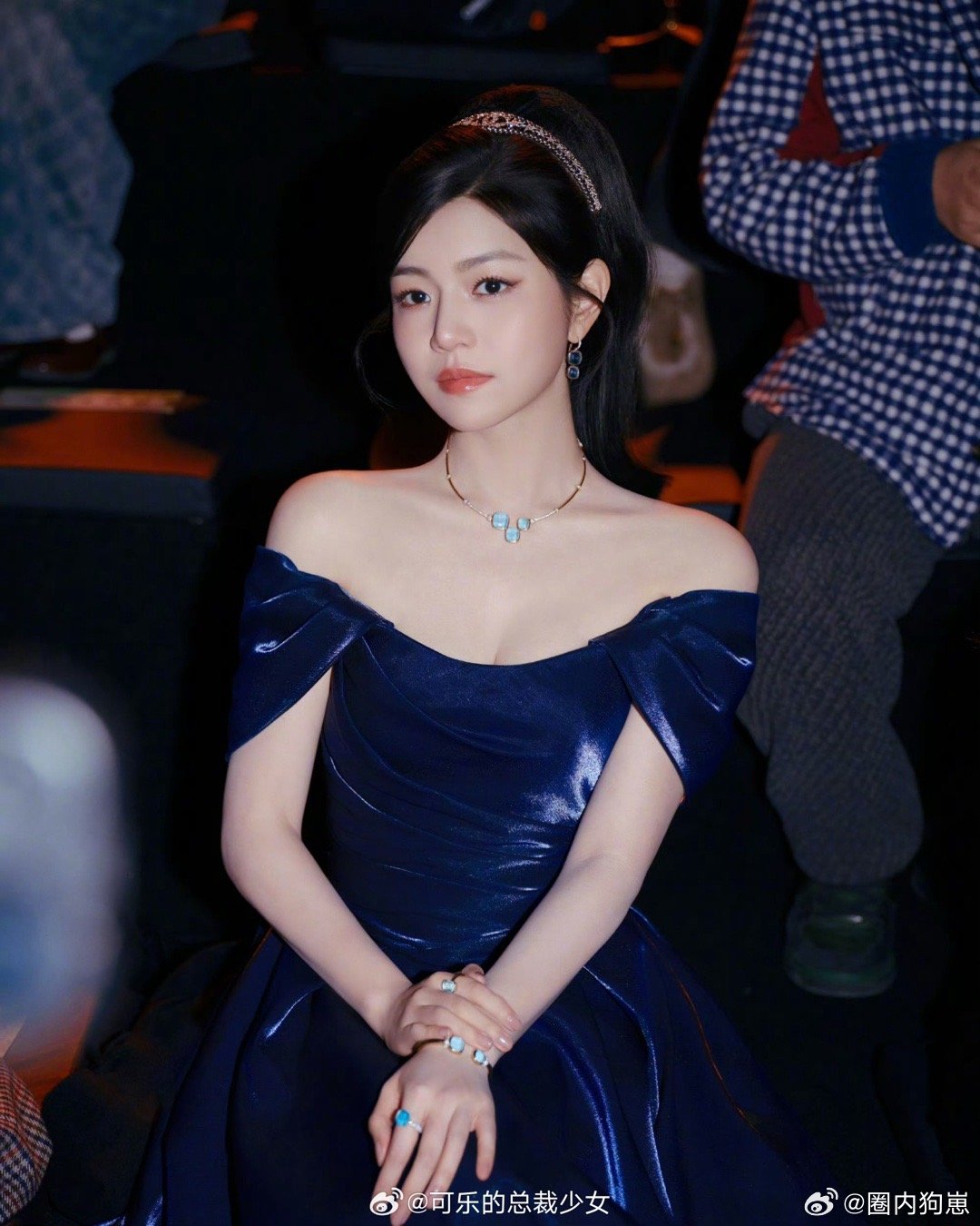看得出她是公主陈妍希 时尚芭莎盛典上陈妍希一出现我眼睛就挪不开了,蓝色丝绒长裙衬