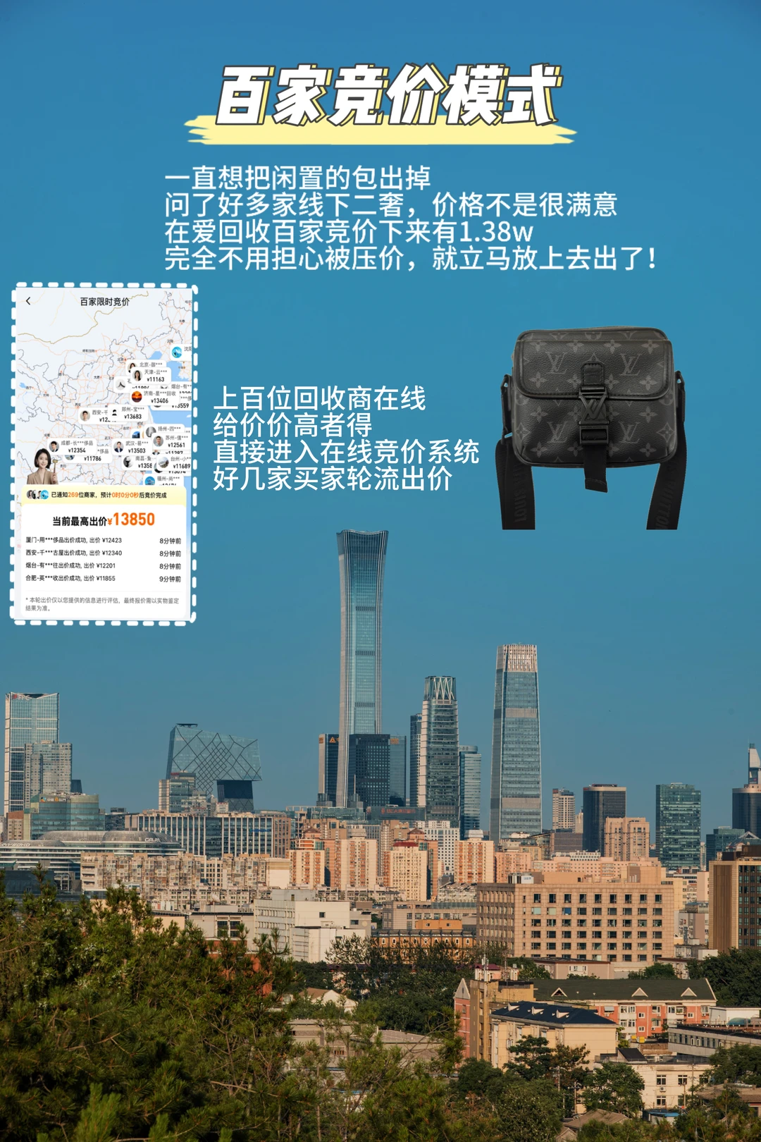 自从做了旅行博主后,常年在外奔波拍摄,基本都背户外双肩包。一直想把闲置的LV包出掉,问了好多家线下二奢,价格都不太满意。后来在看了下,百家竞价给到1.38w,立马就出了!上百位回收商在线出价,价高者得,直接进入在线竞价系统,好几家买家轮流出价,公开透明又省心。价格满意再出手,全程只花20分钟,当场就能结算。爱回收全国有2000多家门店,手表、首饰、包包、数码产品都能回收,让家里闲置循环起来!
