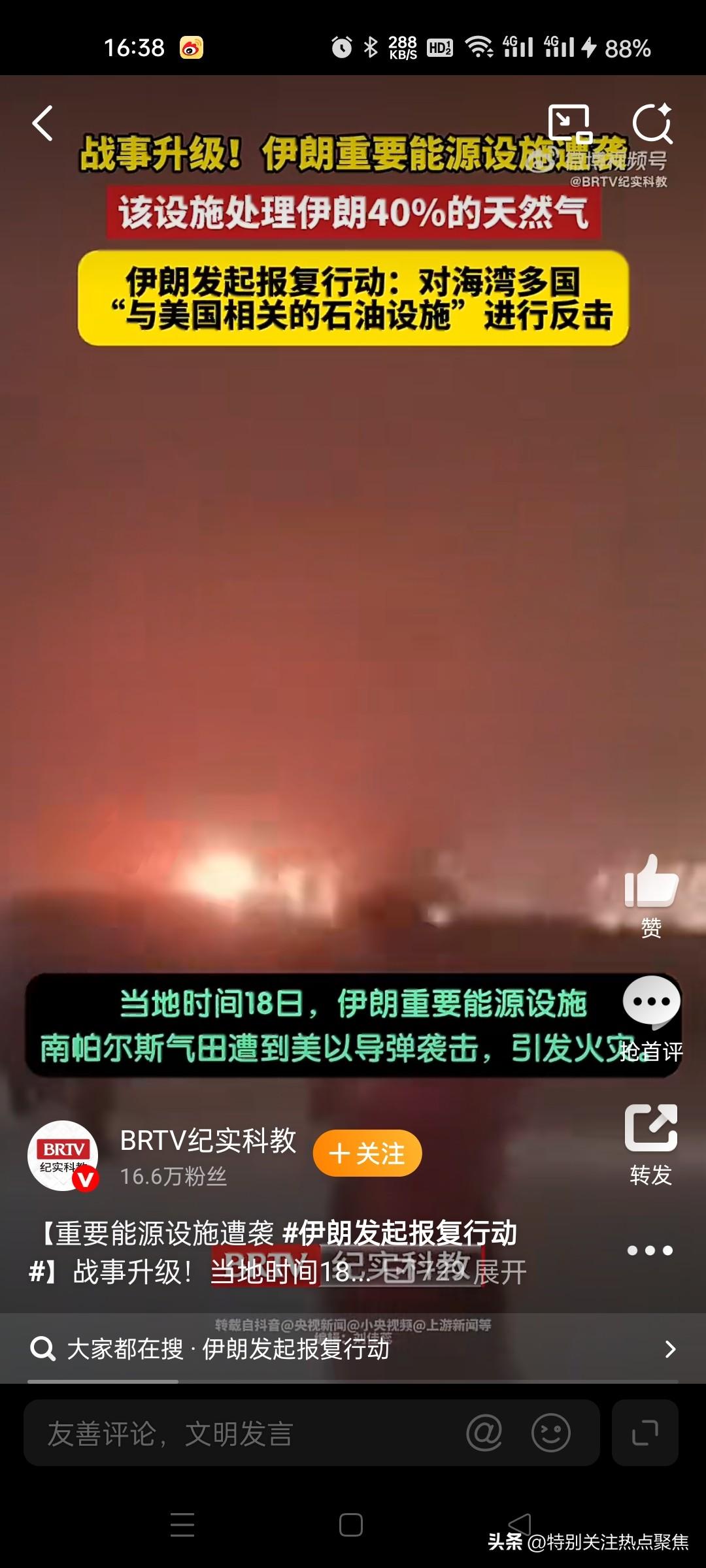 伊朗于19日凌晨发动大规模导弹袭击,对中东多国与美国利益关联的能源设施展开对等报复 伊朗伊斯兰革命卫队海军司令坦格西里3月18日公开声明将与美国相关的石油设施视同美军基地实施打击后,伊朗于19日凌晨发动大规模导弹袭击,对中东多国与美国利益关联的能源设施展开对等报复标志着冲突正式升级至能源领域。 一、伊朗声明背景:美以袭击引发对等报复警告 3月18日,伊朗布什尔省南帕尔斯和阿萨卢耶的石油化工设施遭美国和以色列袭击。当日,伊朗革命卫队海军司令坦格西里在社交媒体发文,首次明确将"与美国相关的石油设施"等同于美军基地的打击级别,警告将对其发动"猛烈炮火攻击",并呼吁相关设施工人及居民紧急撤离。@新华社34新华社CCTV国际时讯BRTV纪实科教 二、报复行动细节:多国能源设施遭导弹袭击 行动代号与目标: 19日凌晨,伊朗发起"真实承诺-4"第63轮军事行动,对中东地区"美国利益相关及拥有美方股份"的能源设施发动大规模导弹袭击。打击目标包括: 美军位于阿联酋的明哈德空军基地、达夫拉空军基地 美军位于科威特的乌代里直升机基地 美军位于巴林的第五舰队基地塞勒曼港 声明强调行动旨在实现"对等破坏",确保敌方损失与伊朗遭袭设施受损程度相当。@人民日报58 连带波及邻国: 沙特首都利雅得炼油厂美方专属区遭袭引发大火,卡塔尔拉斯拉凡工业城遇袭。此前伊朗已预警沙特、阿联酋、卡塔尔三国共5处油气设施为"合法打击目标",包括沙特萨默夫炼油厂、阿联酋阿尔霍森天然气田等。@人民网1118CCTV国际时讯东营网官方微博人民网 三、冲突升级逻辑:从军事基地转向能源设施 伊朗革命卫队在声明中明确解释行动逻辑: 被动升级:伊朗原无意将战火扩至能源领域或损害邻国经济,但因美以袭击其能源基础设施,冲突被迫进入"新阶段"。@CCTV国际...210 精准威慑:打击对象严格限定为"与美国利益直接关联的设施",避免全面战争。@东营网官方微...17 扩大威慑:警告若袭击持续,伊朗将把打击范围扩展至"所有美以盟友的能源设施",直至彻底摧毁。2912俄乌网新华社 四、地区影响与风险前景 经济冲击:南帕尔斯气田承担伊朗40%天然气处理能力,其遇袭导致伊拉克天然气供应中断。沙特炼油厂遭袭或瘫痪美军战机燃料补给链。@BRTV纪实...1022 政治表态:伊朗议长卡利巴夫称敌方行为"无异于自杀",宣告冲突进入"以牙还牙"新阶段。分析指出美以误判伊朗军事韧性及社会凝聚力,可能引发局势进一步失控。@大皖新闻1523 国际反应:卡塔尔谴责以色列袭击伊朗设施,美国宣称"不希望再发生类似袭击",但未直接承认行动责任。@华夏时报23钱江晚报 五、关键动态时间线 时间 事件 3月18日 美以袭击伊朗南帕尔斯油气田;坦格西里声明将打击美关联石油设施 18日晚 伊朗预警沙特、阿联酋、卡塔尔5处设施为"合法目标" 19日凌晨 伊朗发动第63轮导弹袭击,打击多国美军基地及关联能源设施 19日白天 沙特、卡塔尔证实设施遇袭;伊朗警告扩大打击范围