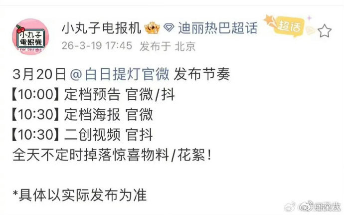 迪丽热巴陈飞宇定档发布节奏迪丽热巴陈飞宇定档预热节奏 迪丽热巴陈飞宇定档发布节奏,明天有新物料看了!