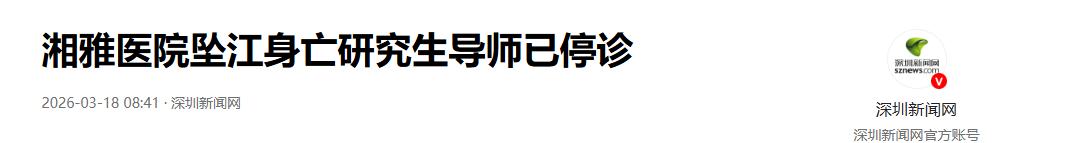 大家都以为她前途无量,谁知她却决绝地跳进了冰冷的湘江。一个即将拿到医学硕士学位的规培生,究竟经历了怎样的绝望,才会选择在深夜结束生命? 就在几天前的3月14日深夜,中南大学湘雅医院的一名研三学生孙某某,从橘子洲大桥上一跃而下。目击者于敏看到警方搜救时,悲剧已无法挽回。直到15日下午,她冰冷的遗体才被打捞上岸。 这本该是一个让人羡慕的医学精英。2018年考入中南大学,本科成绩排名前百分之二十五。2022年她还在社交平台报喜,说保研进了“最爱的科室”。谁能想到,这竟是她噩梦的开始。 把她逼上绝路的,正是当下医学界备受争议的“并轨规培”制度。简单来说,就是专硕生既要当全职医生,又要当全职科研人员。三十三个月的超负荷临床轮转,还要兼顾高标准的毕业论文。 白天她要正常查房、开医嘱、收病人,经常忙到下午一两点才能下班。这还不算完,晚上还得熬夜搞科研。这种极限施压的连轴转模式,就算是铁打的身体也扛不住,更何况是一个年轻女孩。 更致命的打击,来自她的导师谷某某。这位有着斯坦福大学留美背景的医学博士,显然把科研任务看得极重。孙某某生前最后的朋友圈直言,导师安排的任务严重影响了规培工作。 在现行的医学教育体系里,导师掌握着绝对的话语权。能不能顺利毕业,能不能拿到那至关重要的“四证”,全凭导师一句话。学生根本没有拒绝的余地,这种权力的严重不对等,加剧了她的绝望。 其实崩溃早有预兆。早在2025年4月,孙某某就疑似因为抑郁,去湘雅二医院看了精神科门诊。在同学眼里,她是个开朗乐观的女孩。这种典型的“微笑抑郁”,恰恰是最危险的信号。 去年8月,她作为第一作者在权威的《中华神经科杂志》发表了论文。外人看来这是极大的学术荣誉,但背后付出的心血和承受的重压,只有她自己清楚。光鲜亮丽的履历,成了压垮她的重担。 3月14日那天白天,她还在正常查房。到了晚上,却有人看到她在宿舍楼道里崩溃大哭。那条提到“上完最后一个夜班”的朋友圈,成了她对这个世界最后的控诉。随后,她彻底失联了。 现在事情闹大了,中南大学和湖南省卫健委终于在16日成立了联合调查组。涉事导师谷某某的门诊也被停了。医院宣传部说要等官方通报。可是,迟来的调查,还能换回一条鲜活的生命吗? 这绝对不是个例,而是整个医学教育体系结构性痛点的集中爆发。如果制度设计本身就是在榨干学生的最后一滴血,如果医院和学校连最基本的心理干预机制都形同虚设,悲剧只会不断重演。 培养一个优秀的医学生,国家和家庭要付出巨大的成本。孙某某的离世,不仅是她家庭的灭顶之灾,更是医疗界的巨大损失。如何平衡规培与科研,如何约束导师权力,这是必须回答的命题。 眼下联合调查组还在运作,大家都在等一个真相。但不管结果如何,那个原本可以在神经内科治病救人的年轻医生,永远留在了2026年的春天。这笔沉重的制度欠账,到底该由谁来买单?