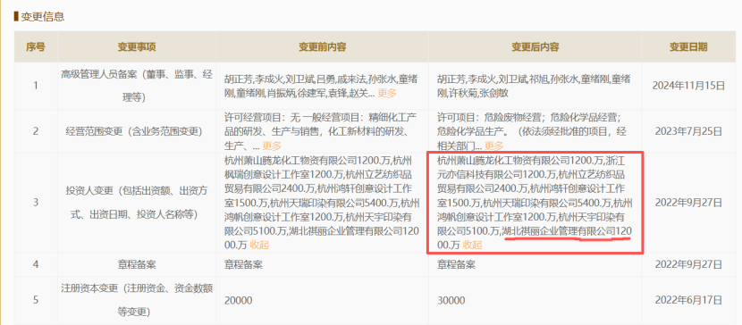 资料显示,利元科技成立于2014年,为湖北丽源科技股份有限公司(以下简称“丽源科技”)参股企业,利元科技位于内蒙古自治区阿拉善盟阿拉善腾格里经济技术开发区,专注于染料中间体研发和新型化工材料研发、生产与销售。公司注册资本3亿元,项目总投资7.7亿元,占地面积558亩,年产能3.2万吨。