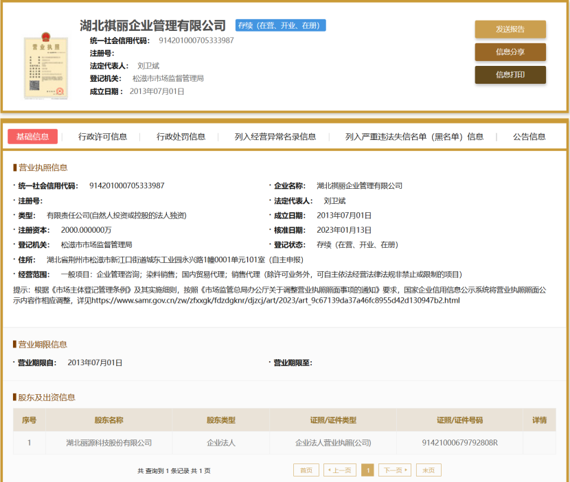 据国家企业信用信息公示系统,利元科技注册资本3亿元,湖北祺丽企业管理有限公司出资1.2亿元占股40%,湖北祺丽企业管理有限公司系丽源科技全资持股。