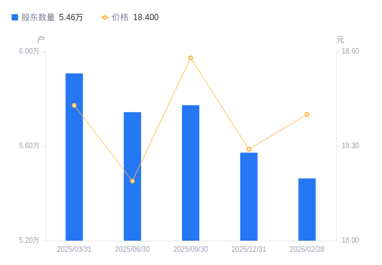 日期A股户数(户)流通A股户均持股数(股)户均持股市值(万元)2025-12-315572218538.0633.912025-09-305772617888.4933.242025-06-305743117980.3732.702025-03-315907617388.1132.042025-02-285721017955.2532.432024-12-315183619816.7338.302024-09-304064825262.0858.732024-06-304400823333.3343.752024-03-314527322553.4344.752024-02-294987520472.4138.57