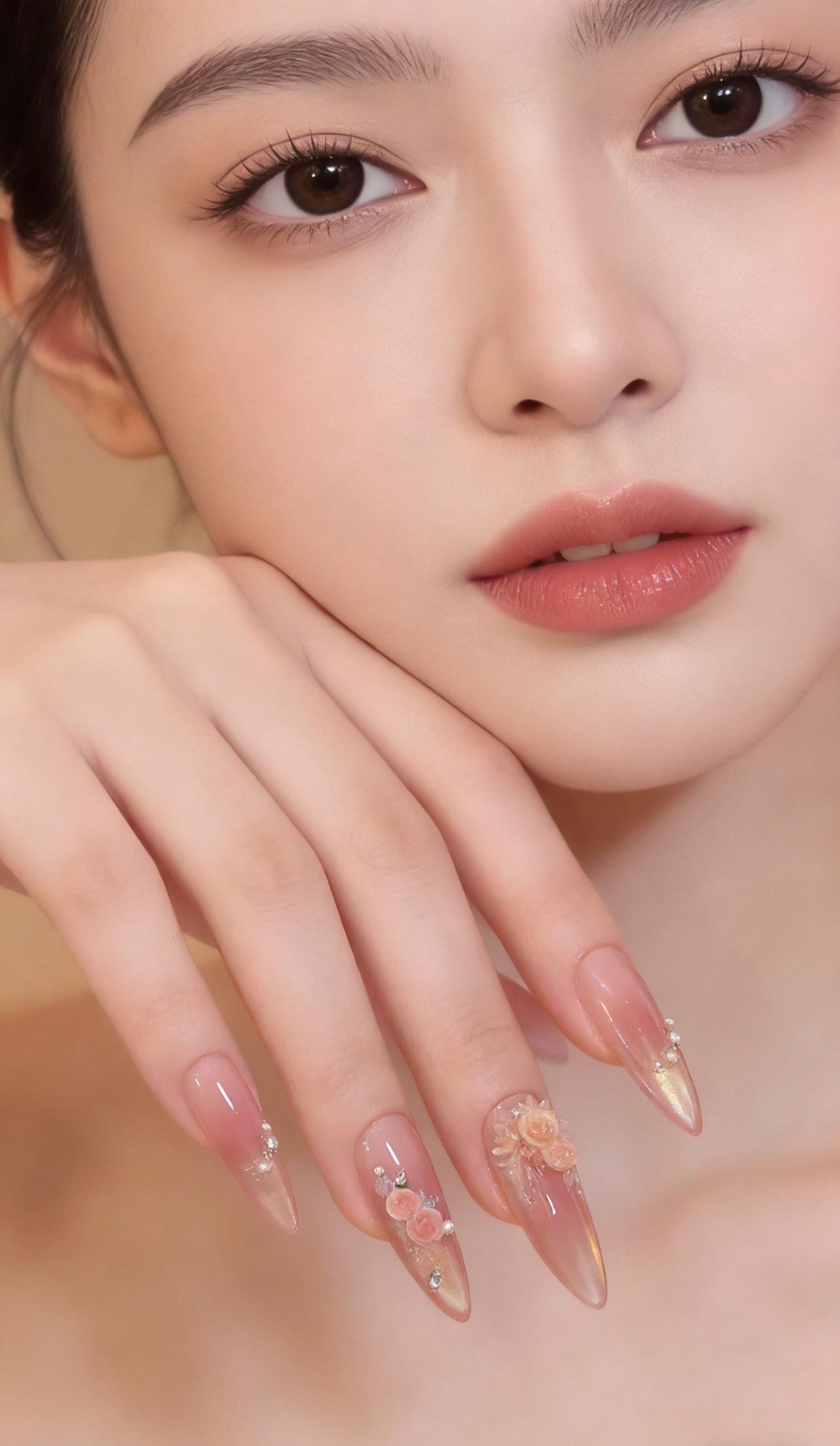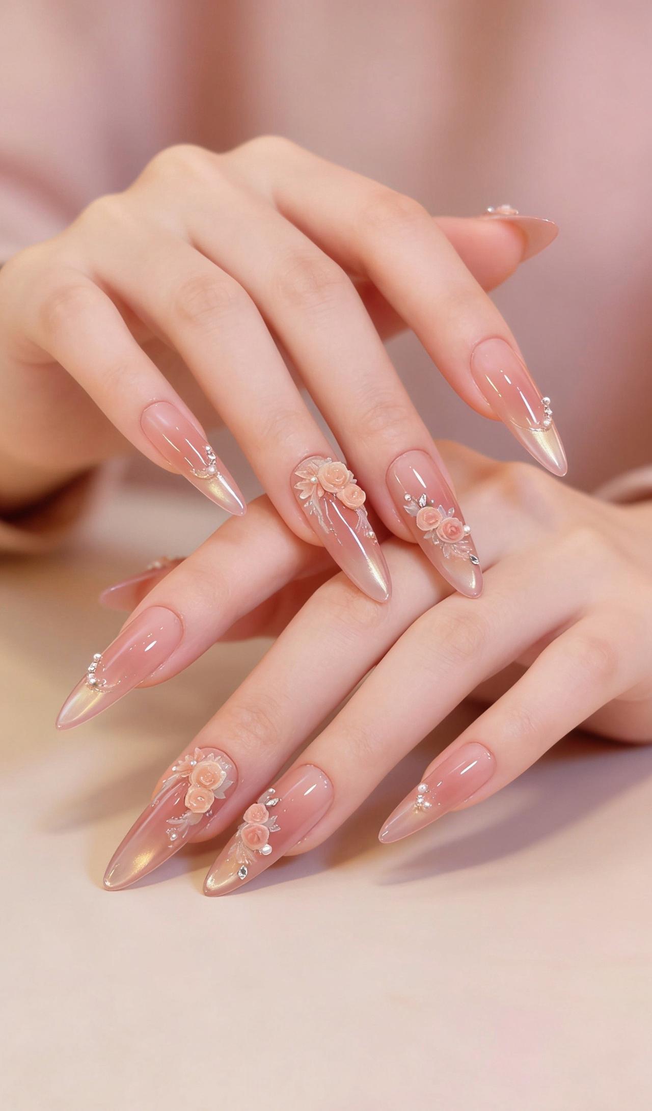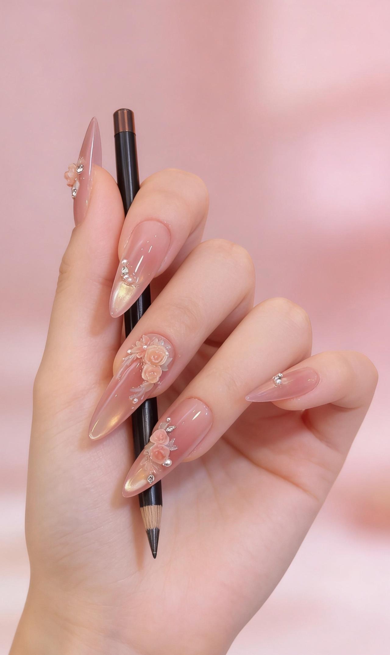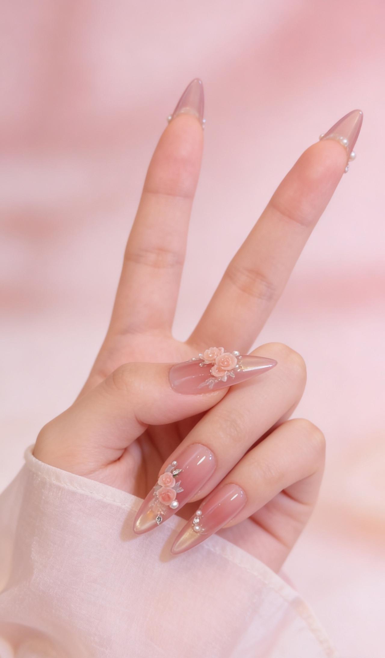 美甲分享 温柔长款美甲 少女心美甲 裸色系美甲 长款纯欲美甲
