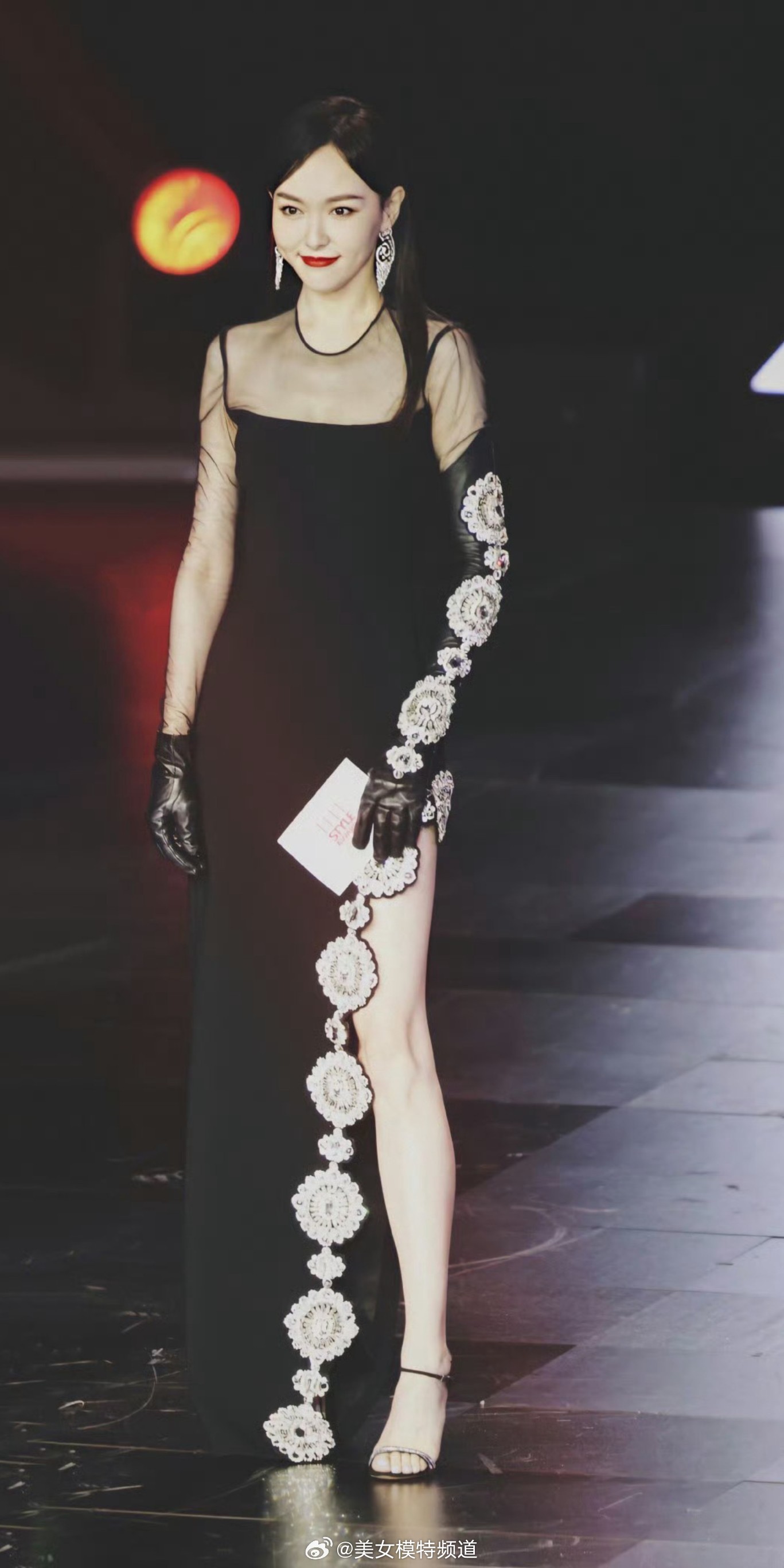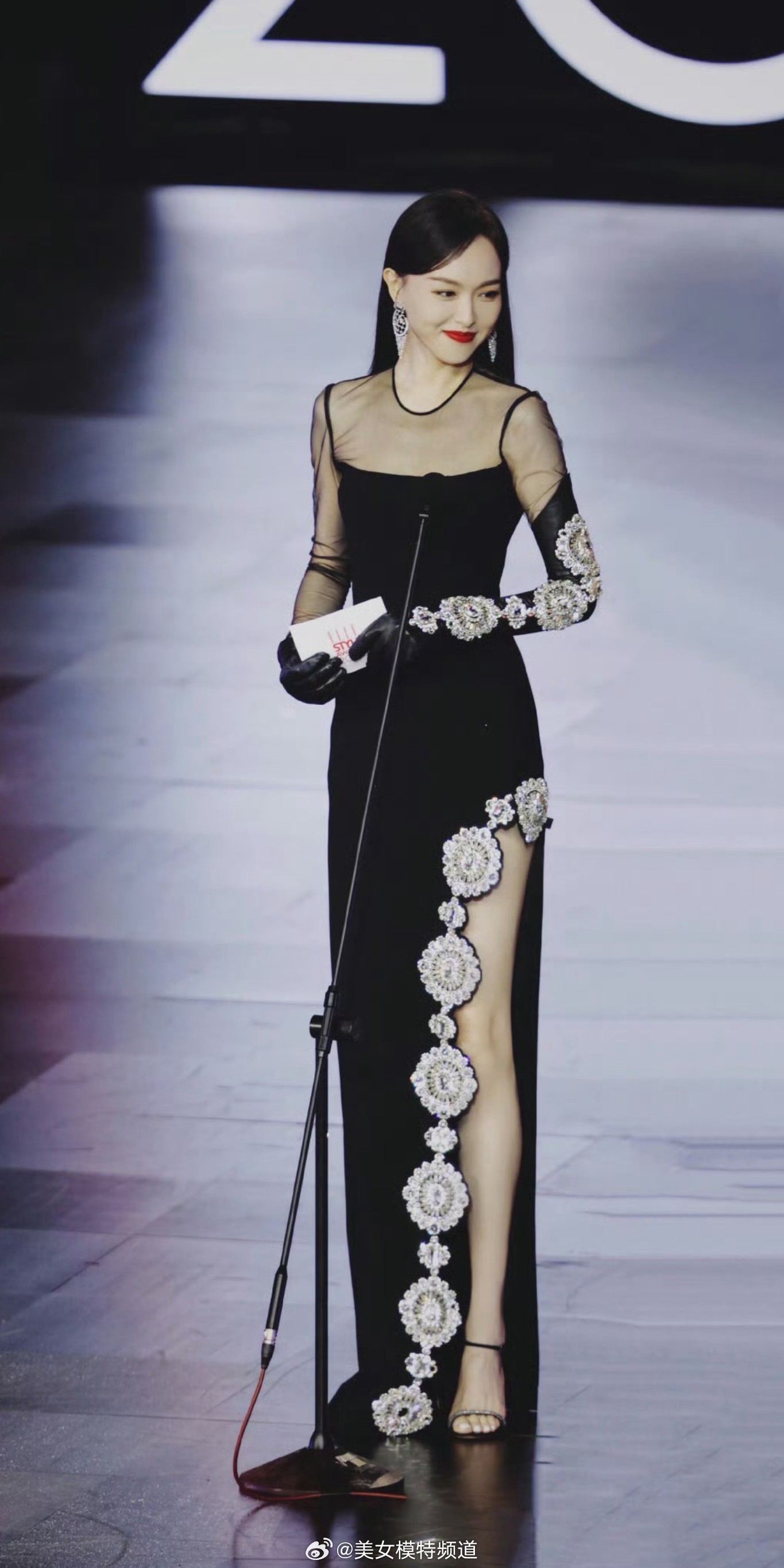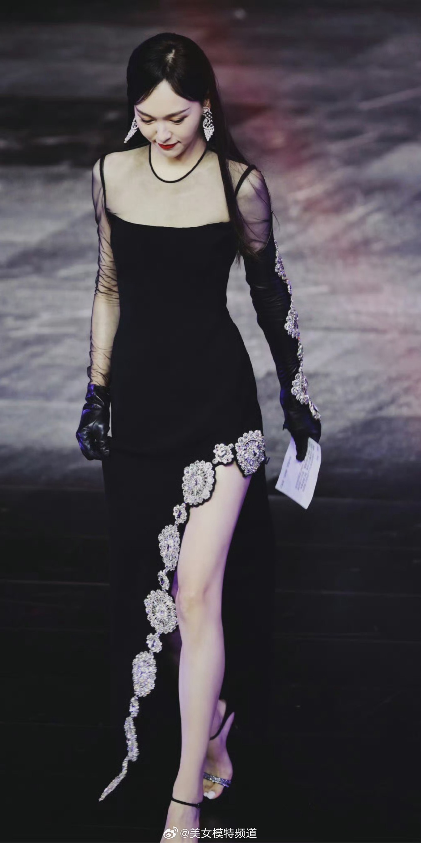 唐嫣黑纱长裙美腿舞台穿搭造型