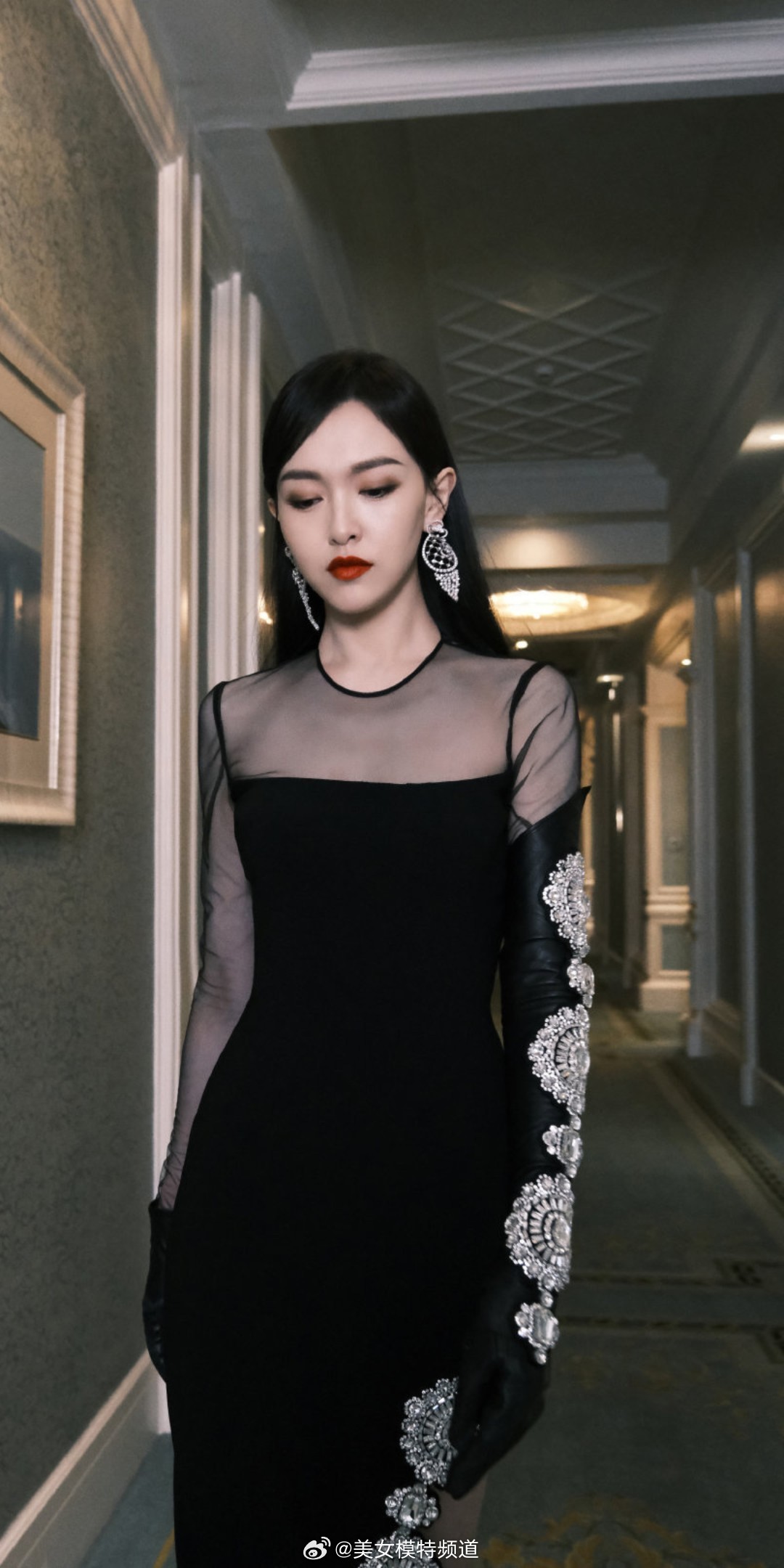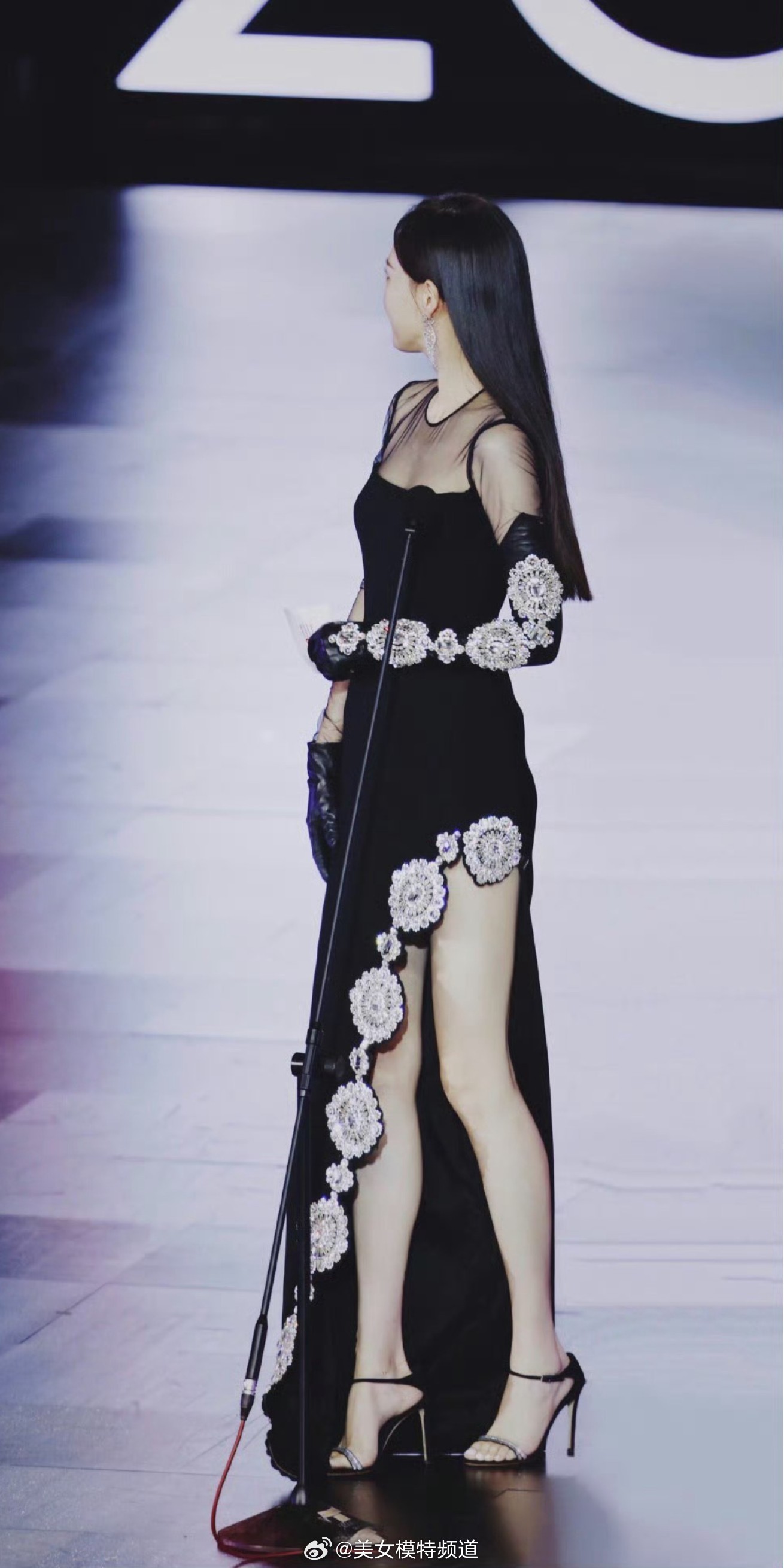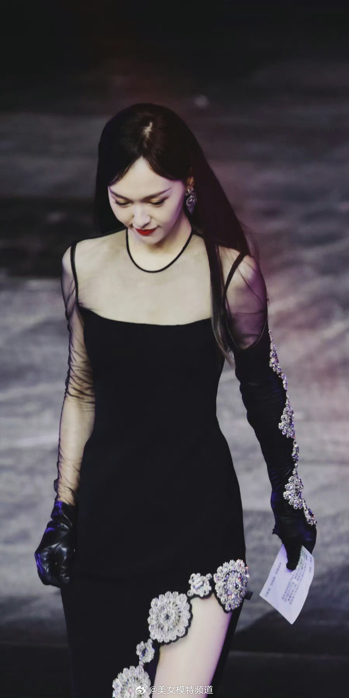 唐嫣黑纱长裙美腿舞台穿搭造型