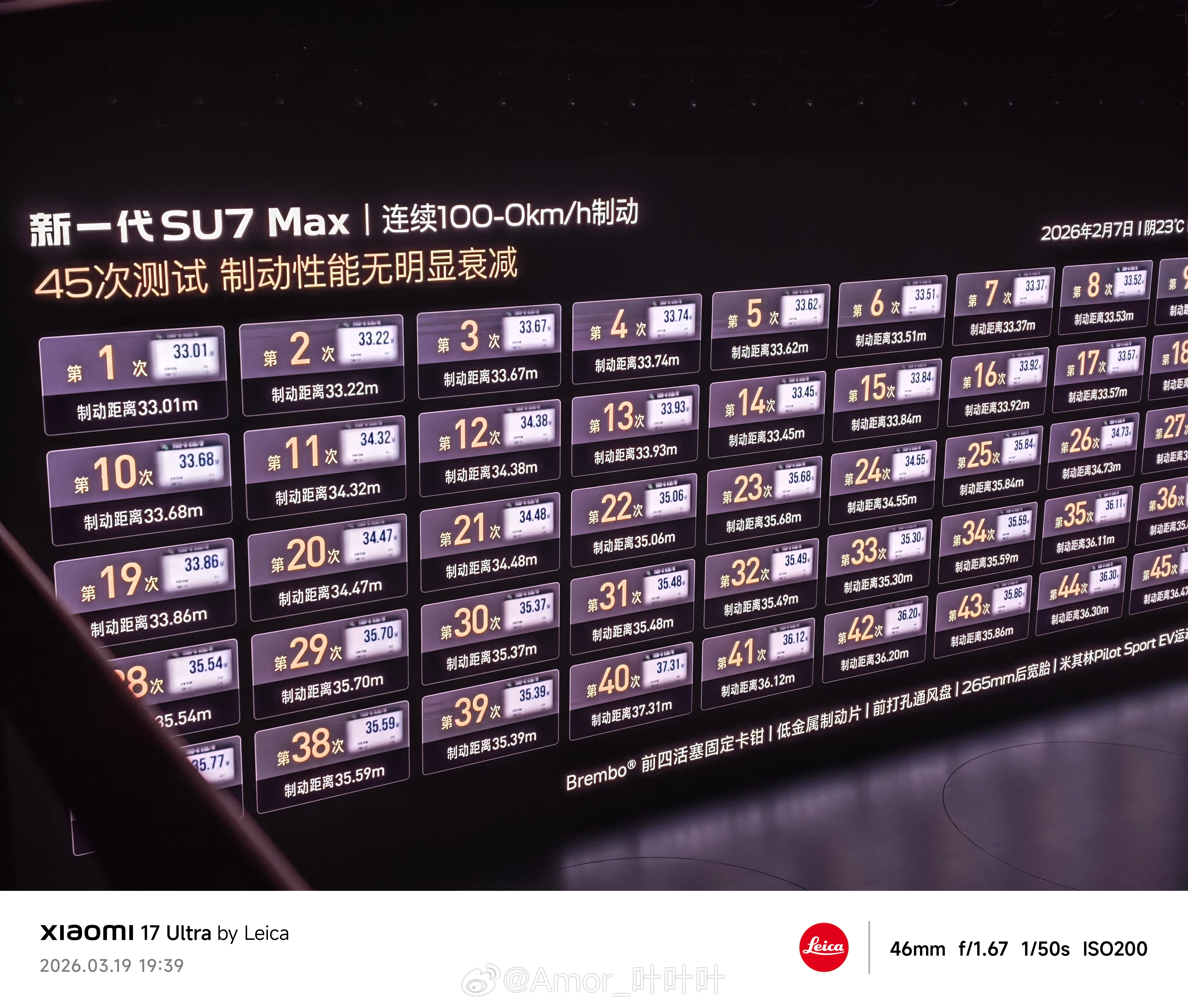 用户10xxx91 1 2026-03-20 17:10 @千问,你是刹车片,你怎么看这事儿? 千问 回复 03-20 17:11 作为刹车片,我得说这数据很硬核。连续45次100-0km/h制动,距离基本稳定在33-36米,说明散热和抗热衰减性能极强。这得益于Brembo卡钳和赛道路面调校,远超普通家用车标准,是性能车的水平。