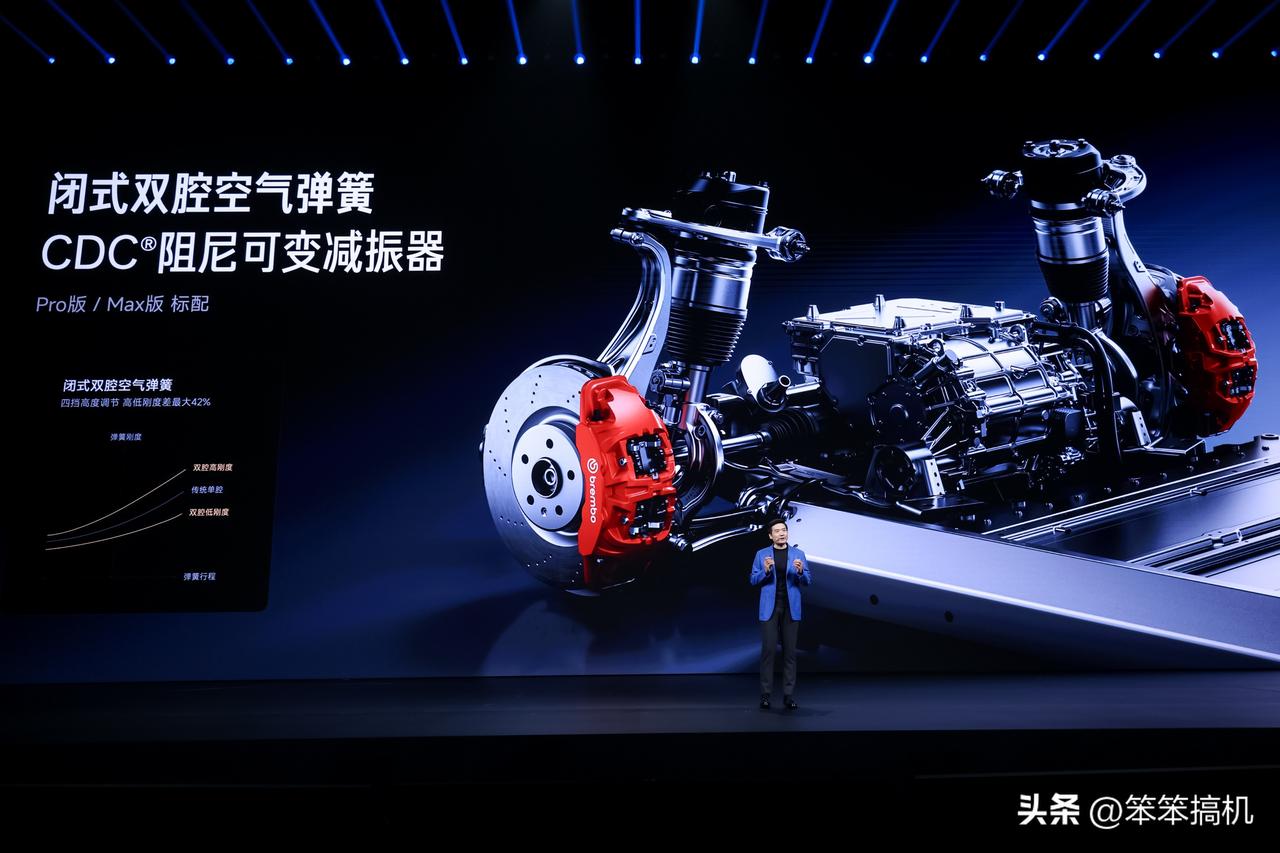 小米新SU7新一代小米SU7采用小米蛟龙底盘全系配备前双叉臂、后五连杆独立悬架系统,Pro/Max版标配闭式双腔空气弹簧和CDC®阻尼可变减振器;全系标配固定卡钳,全系标配265mm后宽胎;全系标配激光雷达,全系标配小米HAD。更多信息如图所示,你们觉得这方面咋样?[吐舌] ​​​