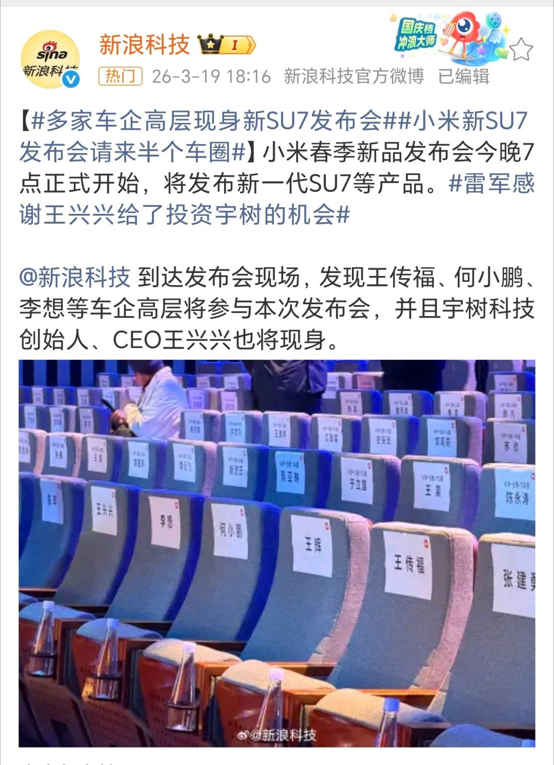 这么多车企大佬来小米发布了。宇树王兴兴现身小米发布会