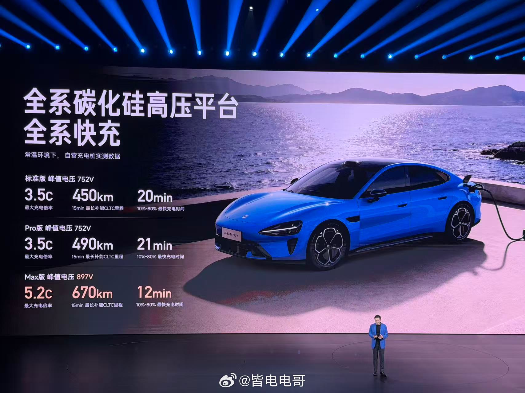 ——全系搭载V6s Plus 超级电机,Max版零百加速3.08s,最高时速265km/h;——Pro版 CLTC续航902km,Max版CLTC续航835km,标准版CLTC续航720km ;——全系碳化硅高压平台,Max版最大充电倍率5.2C,10%-80%最快充电时间12分钟。——全系标配固定卡钳、全系标配265mm后宽胎。——全系搭载小米蛟龙底盘,轮端限滑最快0.35s;