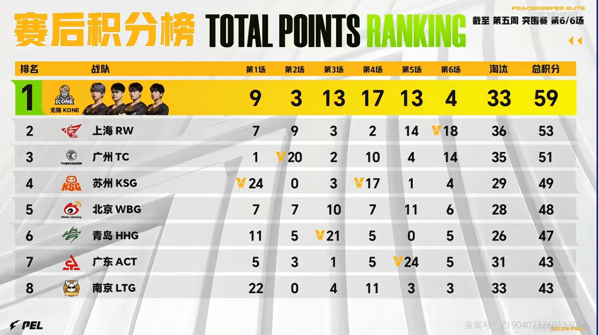 3月19日积分榜:Crab/TJB无缘周决,KONE/RW/TC占据榜单前三