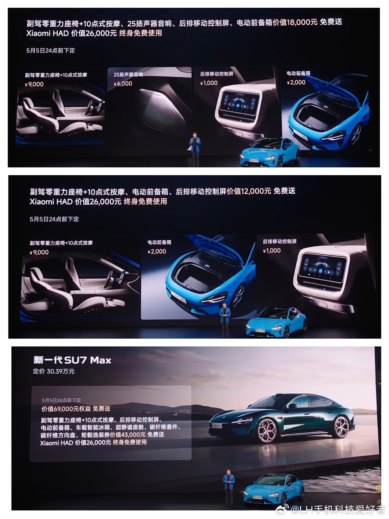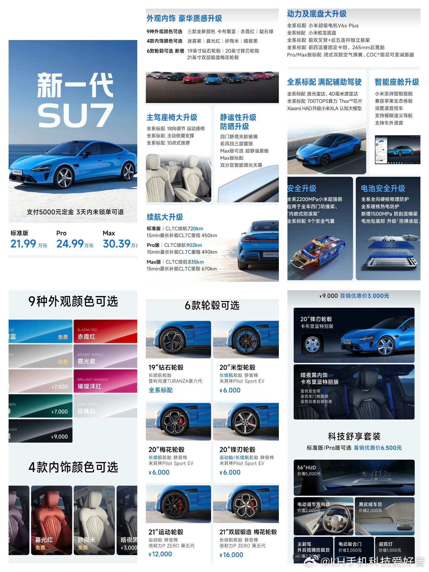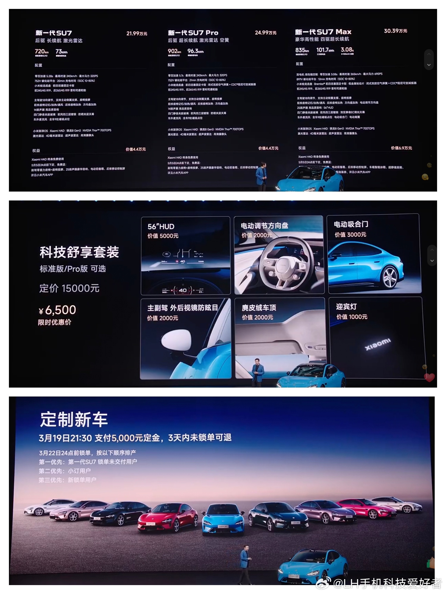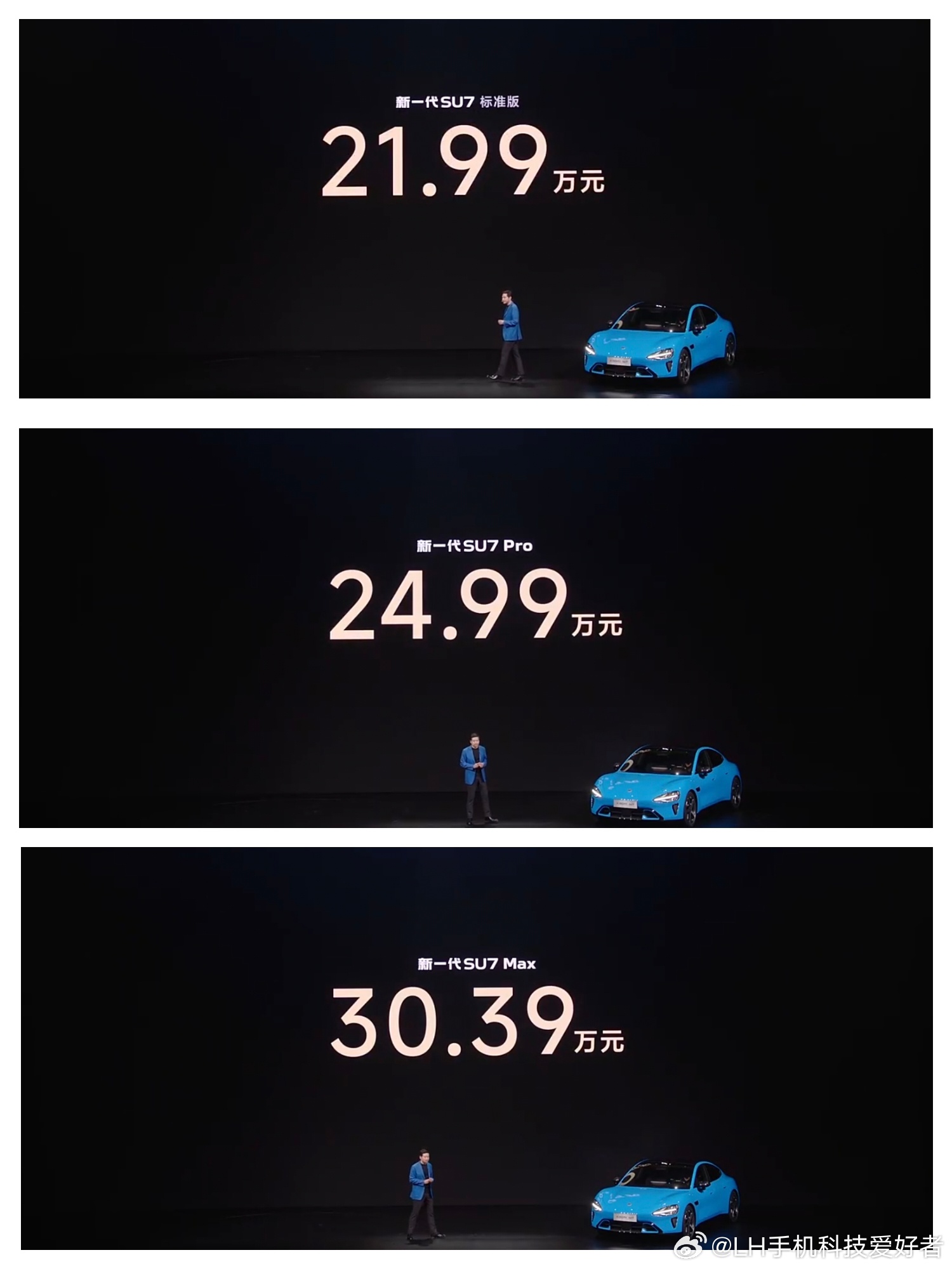 新一代小米SU7价格公布,标准版21.99万元;Pro版24.99万元;Max版30.39万元。对比第一代小米SU7,价格控制的也还可以。除了最低配没有空悬,Pro以上都有空悬,这个价格大家觉得怎么样呢?