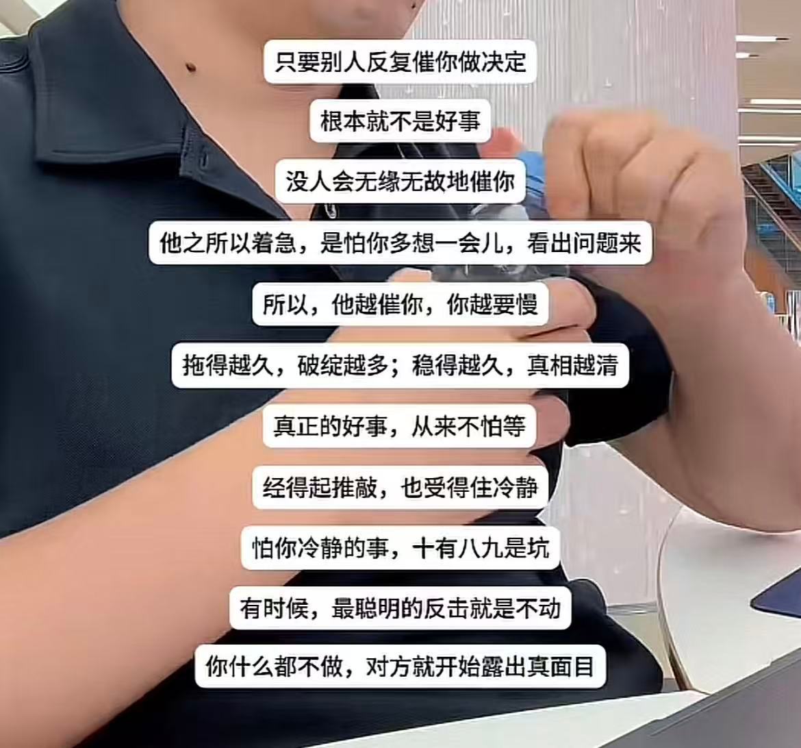 一定要警惕那些催你迅速做决定的人.....