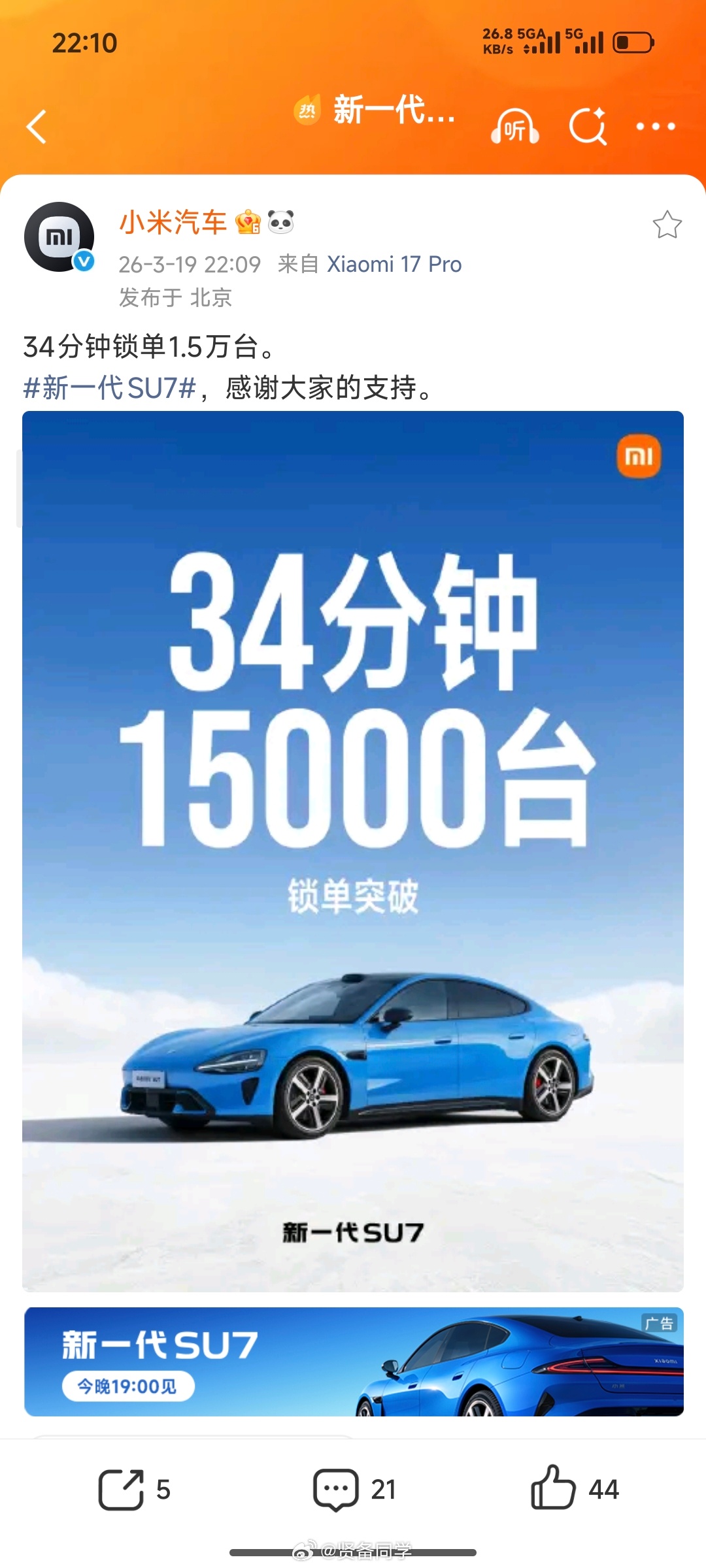新一代SU734分钟1.5万辆!我这边也帮着推荐了2辆锁单了!问了一下销售朋友,