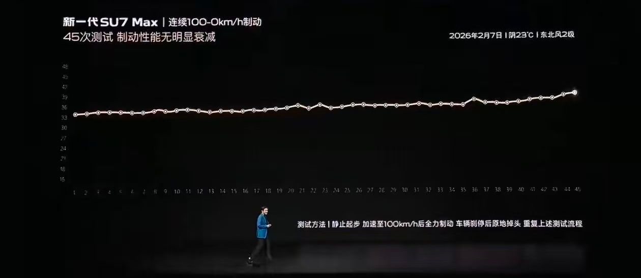 新SU7连续45脚零百制动不衰减连续45脚零百公里制动测试是什么概念?普通性能车