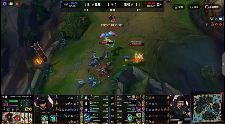[16:53]JDG抱团用先锋撞掉LOUD中二塔,回头拿下听牌龙!