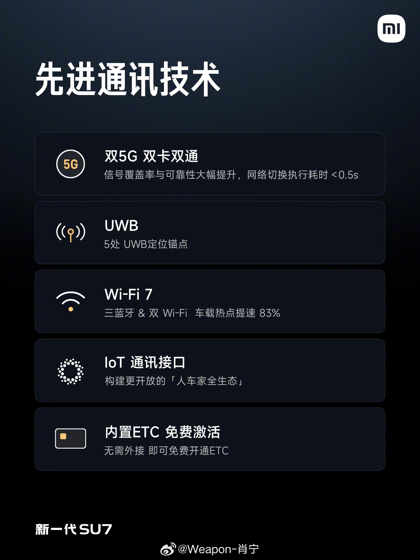 新一代SU7 电子电气架构全面升级。域控制模块四合一,面向智能时代,更高集成,更强算力。搭载旗舰级芯片,打造先进的智能座舱和辅助驾驶体验。核心板通过车规级测试,安全值得信赖;全新的电子电气架构还带来更强的体验,支持双5G 双卡双通、内置ETC免费激活等功能。哨兵模式也有升级,更省电、更智能、更安全。