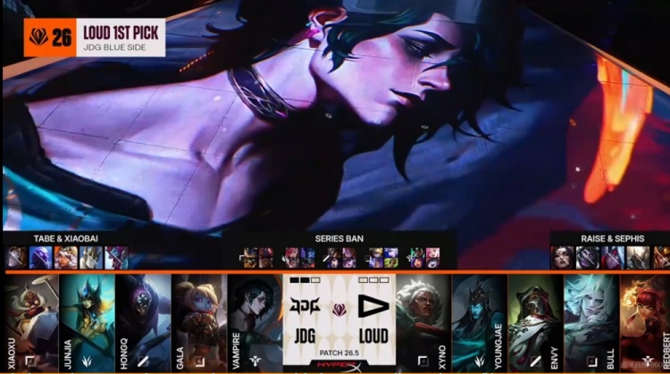 BP阶段:(第三局LOUD选择先ban先选,JDG则是选择蓝色方)