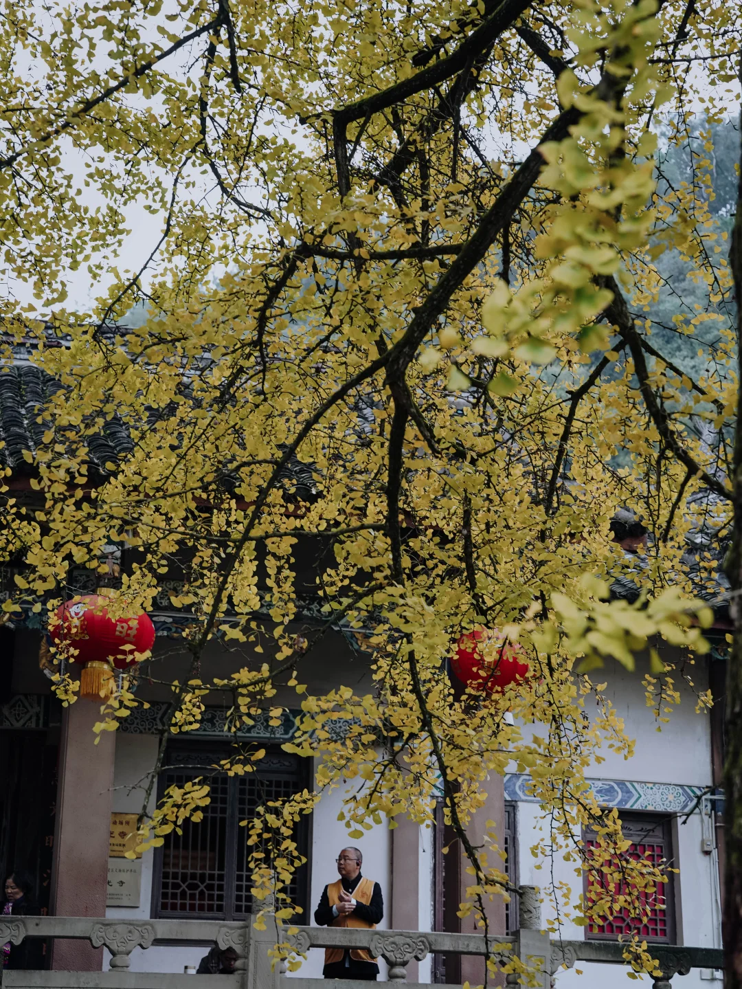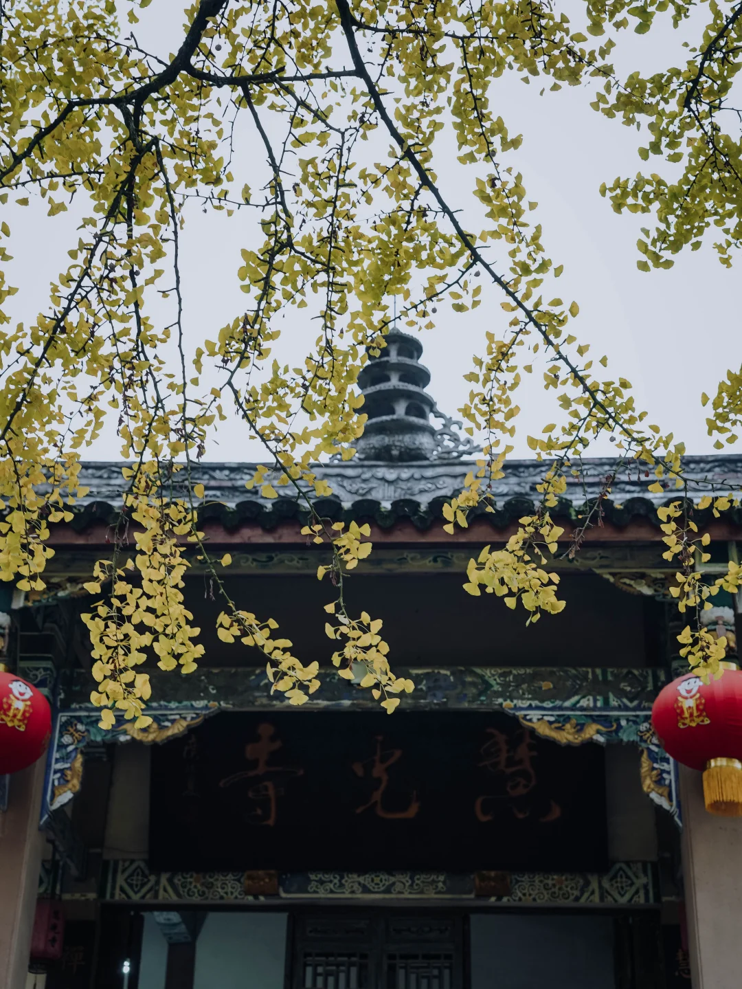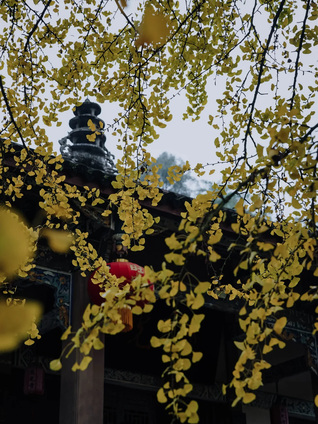 ✔️殿宇角落:找寺庙飞檐、雕花窗棂做前景,搭配金黄叶片,层次感绝了