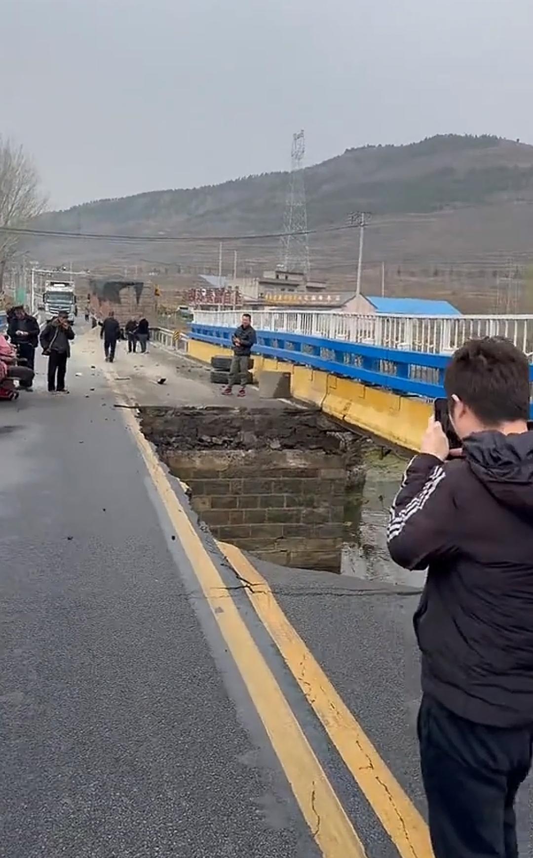 费县大王庄桥被一辆大货车压断了一节,令人唏嘘的是,当时桥下还有两个捞鱼的人,真命