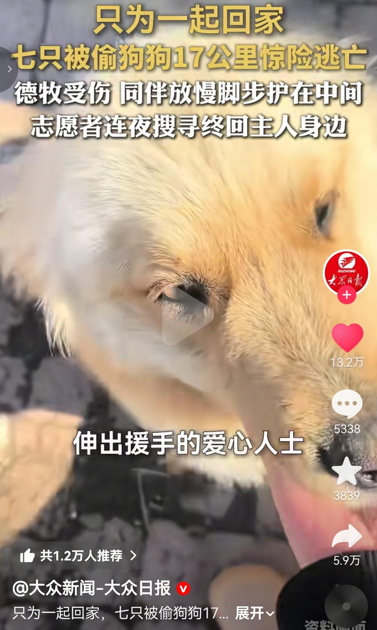 真的破防了!据大众日报的报道,吉林长春7只被偷的狗狗,从偷狗zei手里逃出来后,硬生生走了17公里回家路,受伤的德牧被同伴死死护在中间,连人类都做不到的不离不弃,它们用行动演给我们看! 3月16号那天,有网友在长双快速路上拍到这揪心一幕:7只狗狗紧紧挨在一起走,没有一只乱跑,没有一只掉队。 其中那只德牧腿受了重伤,一瘸一拐走不动,其他狗狗立刻放慢脚步,把它围在最中间,像一道活的屏障,生怕它再受一点伤害,也怕它被落下。 它们不是流浪狗,是被偷狗zei掳走后侥幸逃出来的!离家17公里,黑夜里的公路、陌生的田野,它们凭着对家的执念,凭着对同伴的守护,一步一步往回挪。 事件曝光后,爱心人士立刻行动起来,贴寻狗启事、开无人机搜寻,志愿者连夜排查,终于在3月18日晚找到了它们,7只狗狗一只不少,全部平安回到了主人身边。 这场17公里的归途,是狗狗之间的忠诚守望,更是人间的善意接力!可想想那些没逃出来的狗狗,想想它们可能要面对的命运,我气得浑身发抖! 网友们看完直接炸了: “我家狗丢过一次,我找了三天三夜,看到这视频直接哭了!狗狗都知道不抛弃同伴,有些人真该好好学学!” “17公里啊!它们得有多怕、多疼,还想着一起回家!必须严惩偷狗贼!” “我家金毛跟我出门,我崴脚它都要蹲在我旁边舔我,狗狗的爱真的比人纯粹一万倍!” “护在中间那一幕,比多少电视剧都催泪!这才是真正的生死与共!” “它们不是畜牲,是陪着我们的家人!偷狗的行为必须被严厉打击!” 我真的越想越气!偷狗贼为了那点黑心钱,把活生生的生命当成商品,塞进狭小的车厢,往屠宰场里送!他们眼里只有利益,没有半点人性,连最基本的良知和底线都抛在了脑后! 可你看这些狗狗,在最绝望的逃亡路上,没有各自逃命,没有丢下受伤的同伴,它们紧紧靠在一起,用最笨拙的方式守护彼此。它们不会说话,却用17公里的归途告诉我们:什么是忠诚,什么是陪伴,什么是不离不弃。 反观那些伤害狗狗的人,你们摸着良心问问自己,对着这样一群懂得守护的生命下狠手,晚上睡得着觉吗?连狗狗都懂不离不弃,有些人却连最基本的善意都没有! 那些连夜搜寻的志愿者,那些为狗狗发声的网友,才是我们该有的样子——对生命有敬畏,对弱小有怜悯,对恶行零容忍! 狗狗用17公里的逃亡,守住了同伴的生命;我们该用最坚定的态度,守住人性的底线! 偷狗的恶行必须被严厉打击,伤害动物的行为必须被唾弃,愿每只毛孩子都能远离伤害,被这个世界温柔以待,每一个生命都不该被辜负,每一份守护都值得被尊重! 对此,你怎么看?