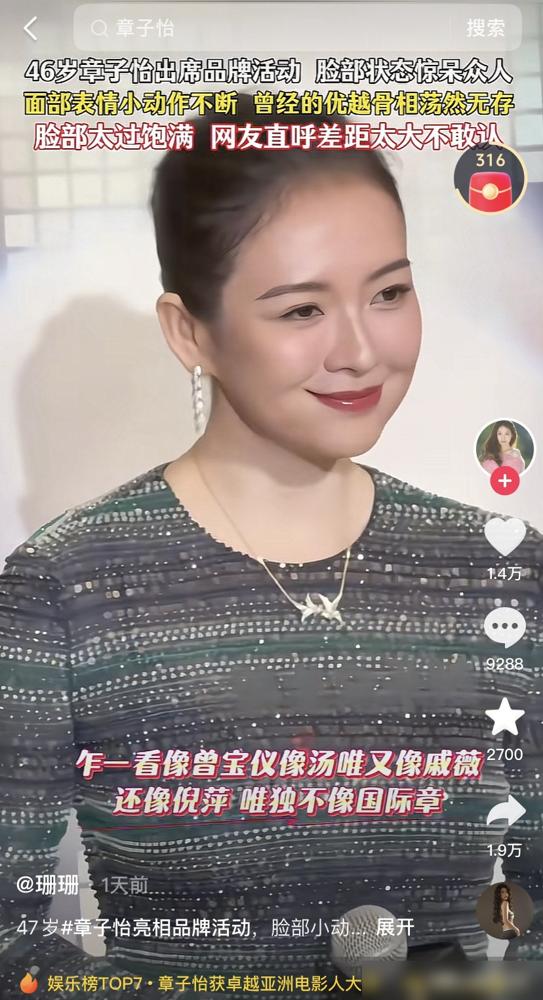 章子怡的脸怎么肿成这样了?苹果肌绷得像馒头,难道是医美翻车? 3月14日,她出席珠宝活动,生图里下颌线模糊,苹果肌鼓得像塞了两个球。笑起来,那股僵硬感甚至被网友比作了蔡明。顶级骨相美人,一夜之间沦陷? 业内医生直言,这是典型填充过度,46岁后代谢减慢,很容易“馒化”。但工作室却回应:为四月新戏增重20斤。你觉得,真相到底是什么? 那张曾惊艳世界的电影脸,究竟是为角色付出的牺牲,还是对抗岁月的无奈挣扎?是时代对女性苛刻,还是我们对美的定义太窄?