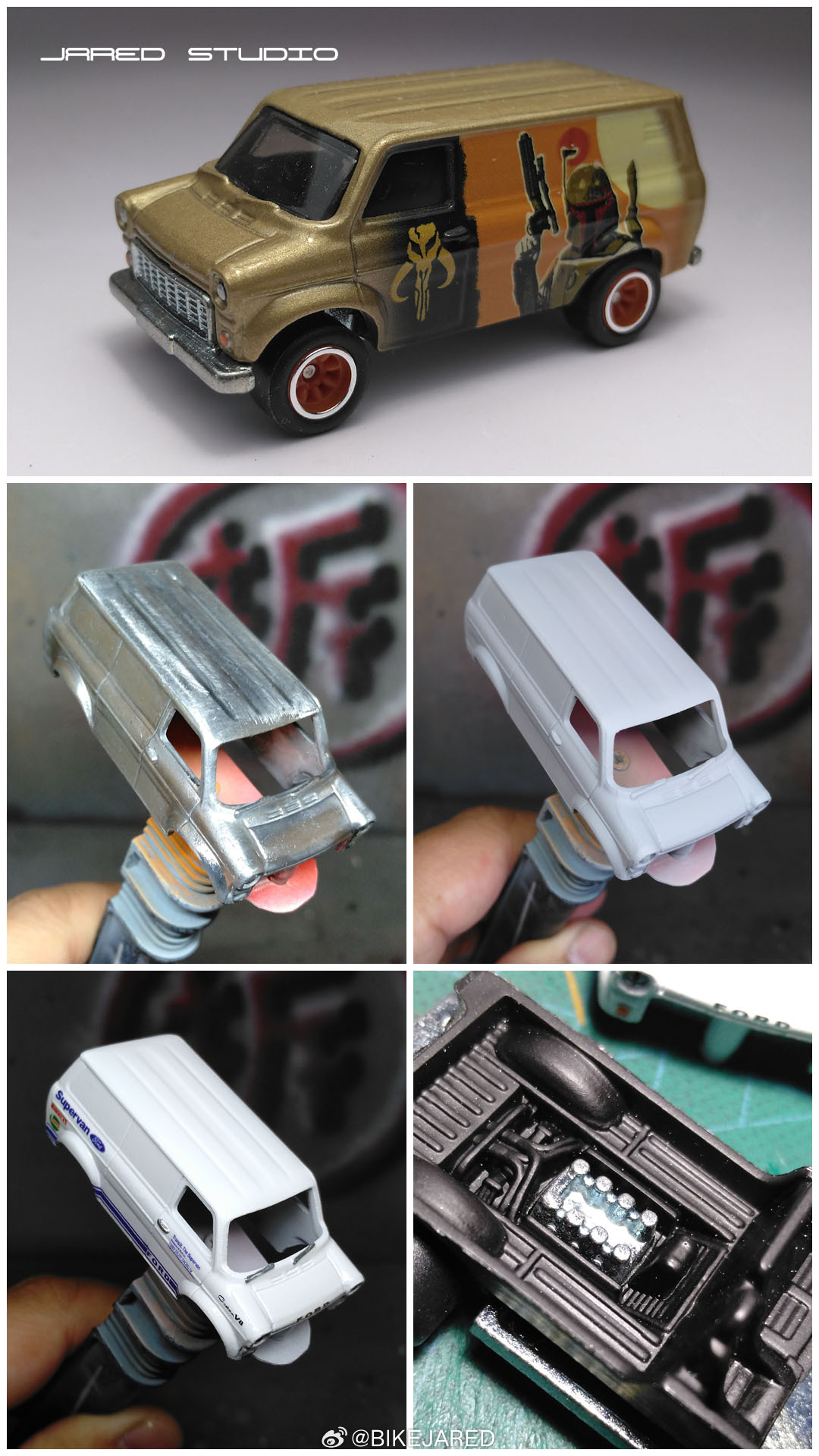 hotwheels风火轮ford transit supervan全顺 完工一辆风火轮初代全顺SuperVan改色,参考实车订制贴纸。这车里面还做出了V8发动机的造型,可惜不拆开不太容易看到,它真车就是这个结构。张家口