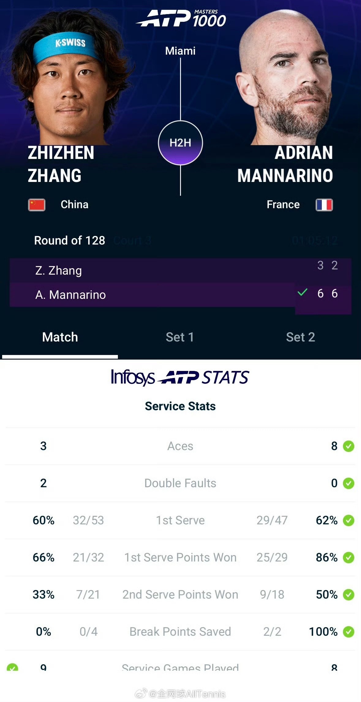 张之臻0比2马纳里诺张之臻止步迈阿密赛首轮张之臻36、26不敌法国老将马纳里诺,