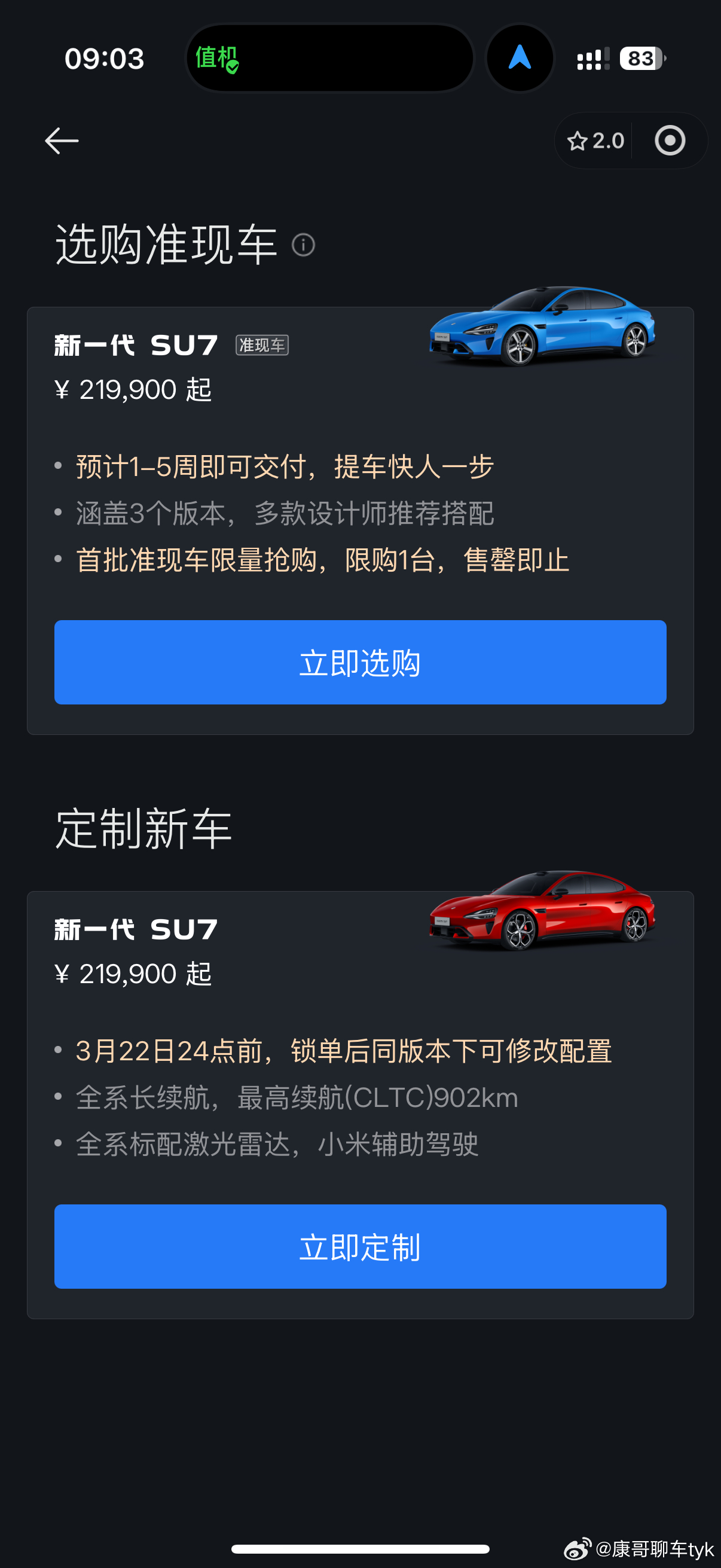小米新一代SU7今日发布刚刚选配了一下,有准现车可以提,自己定制的5-6月份也可以交付,这个产能提升很快啊👍大v聊车