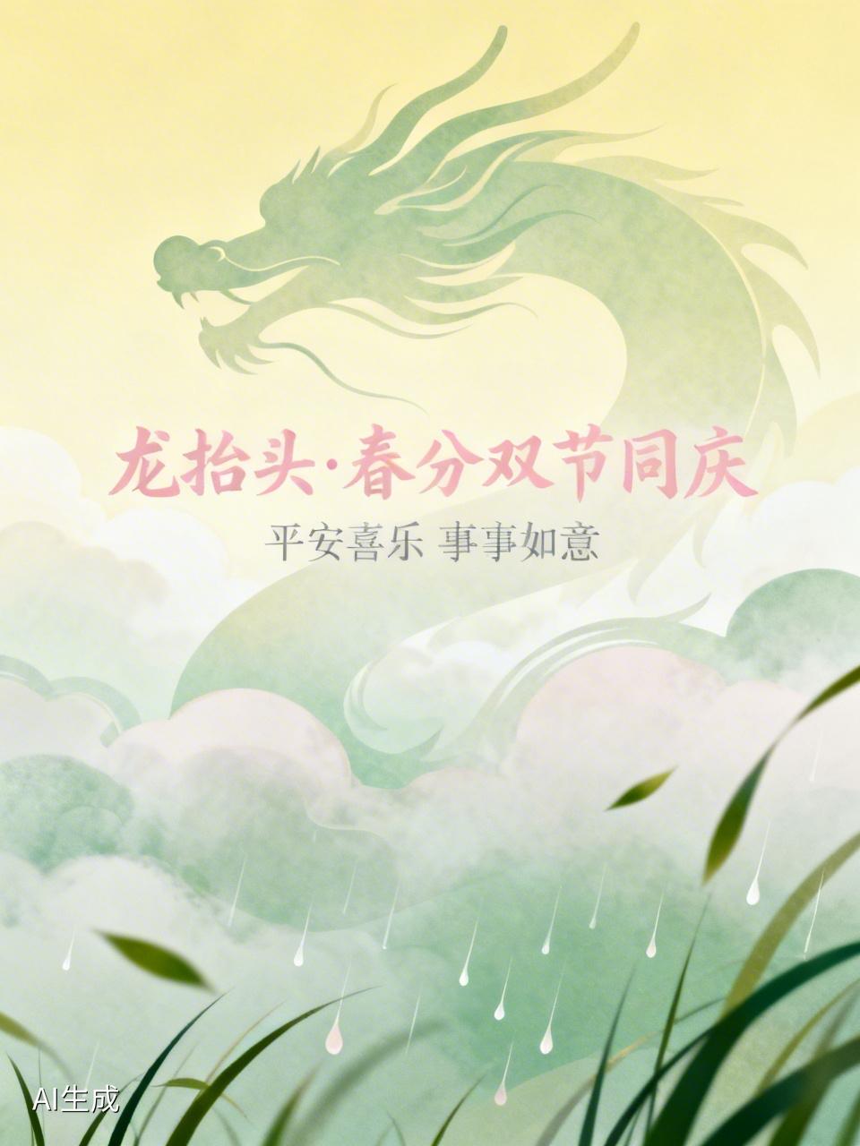 今日恰逢龙抬头与春分双节交汇,祥龙昂首唤醒大地生机,昼夜均分带来阴阳平衡。愿这份双重喜悦化作最真挚的祝福,如春风拂面般温柔,似春雨润物般无声,让大家在平安喜乐中开启美好一天,事事顺心如意,生活处处皆有惊喜。