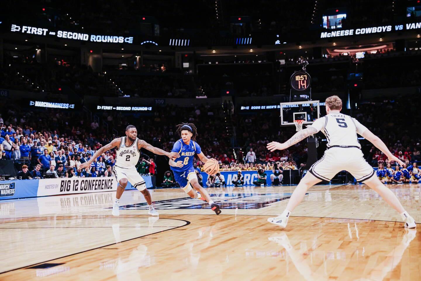 麦克尼斯州立大学今年又是首轮出局,去年那个扛着音响出场的Amir “Aura”