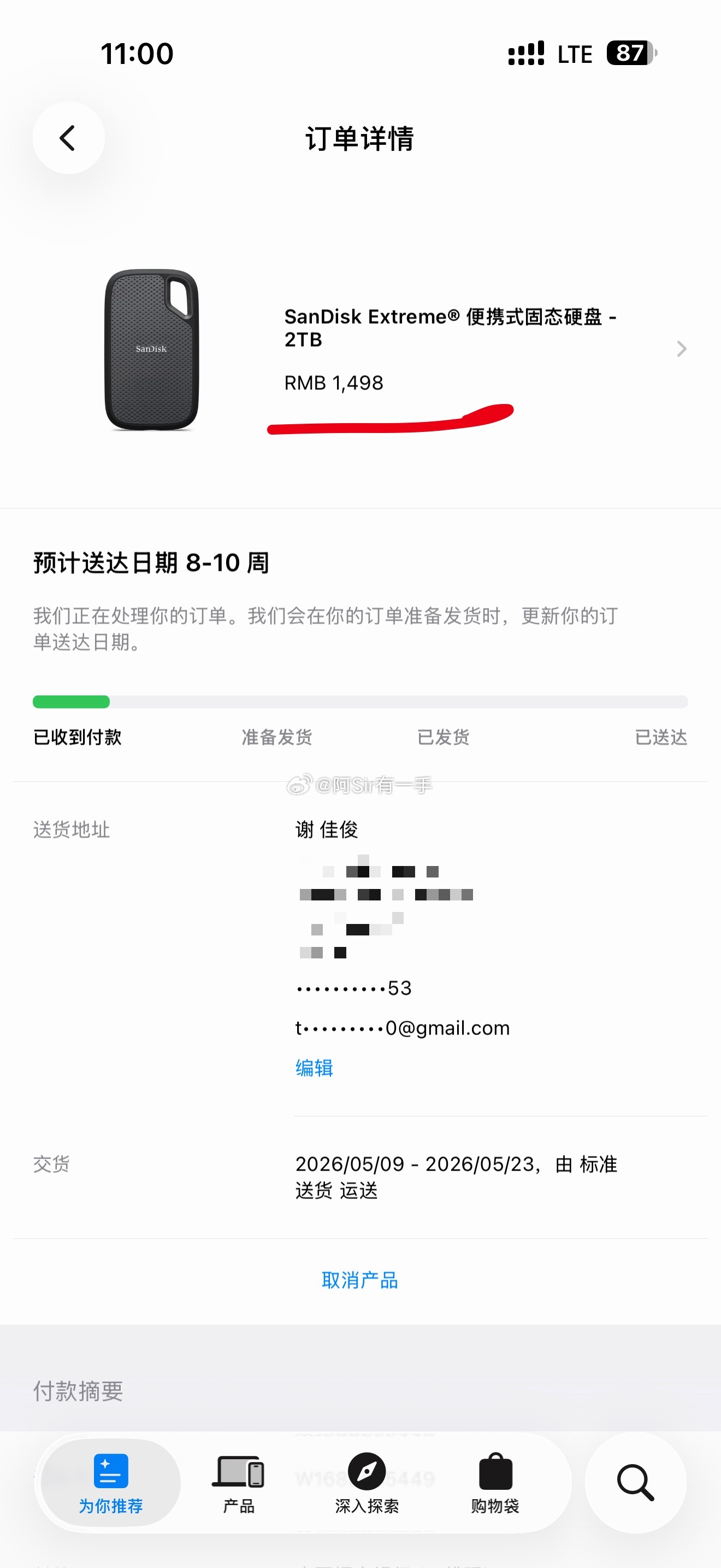 抢疯了!闪迪SSD被薅到断货:苹果官网直接涨价3300元翻倍卖近期苹果官网闪