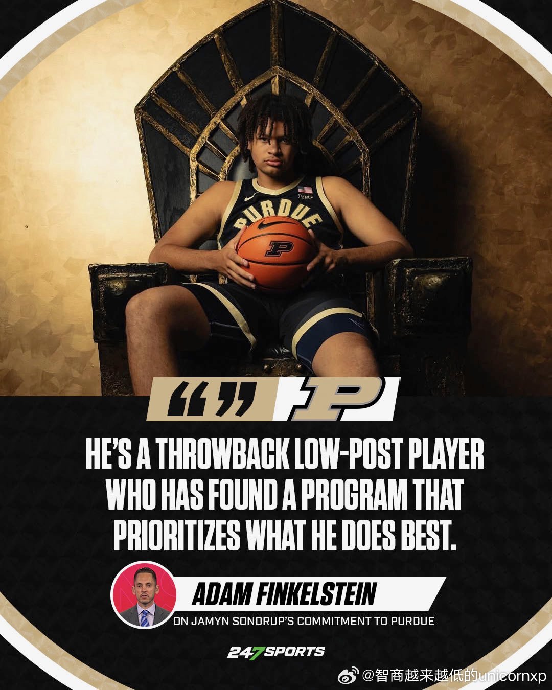 郇斯楠迎来新竞争对手,普渡大学招募了2026届206公分中锋Jamyn Sondrup郇斯楠NCAA