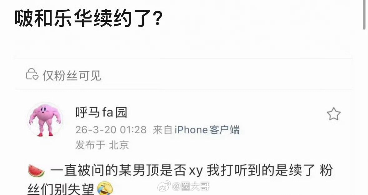 雨昕 2 2026-03-20 22:25 续不续约粉丝都支持,王一博去哪,粉丝就去哪,因为他们喜欢王一博,信任王一博,知道王一博聪明能干,实力强悍,不是一般的有思想、有定力、有手腕。要是王一博觉决定续约了,一定是拿到了王一博想要的待遇,是与乐华进行了好几轮掰手腕、谈判共赢的结果。