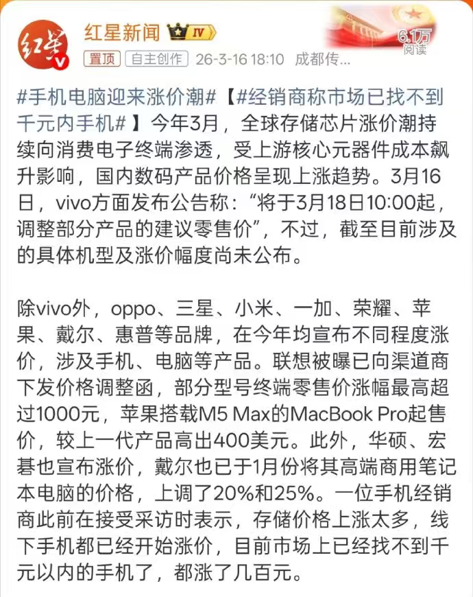手机涨价什么时候是个头 很难讲啊,现在刚开始有涨价的势头,受内存供应的影响,只会一直影响手机的价格,不涨价就会影响到接下来一系列的开发成本,造成恶性循环。不过也有个好处,良心厂家会被倒逼更专注研发和供应链来控制成本,而不是每季度交任务一样挤牙膏推出一个没什么提升的新一代产品。