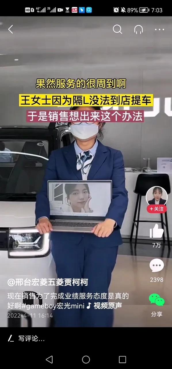 近日,河北邢台发生一件令人吃惊的事,一名姓王的女士本来已经买好车了,但是因为疫情突然被隔离了。但为了销售业绩,也为了车主不耽误提车,4S店想出两全其美的办法,让王女士的照片提车。