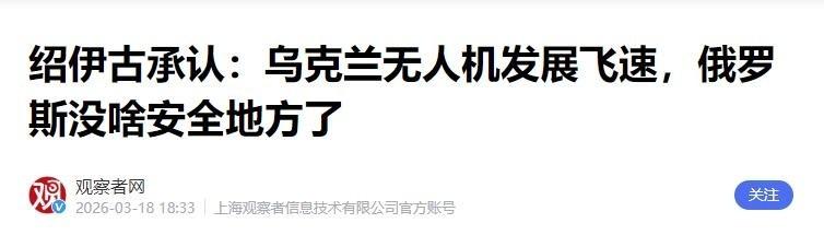 56 国情报网全线绞杀,连俄罗斯最隐秘的“乌拉尔心脏”都被无人机死死锁定,昔日固若金汤的大后方彻底沦为前线! 3 月 17 日,绍伊古在乌拉尔重磅承认:俄全境已无安全区。这不仅是恐吓,更是残酷现实。这个距乌边境 1500 公里的军工能源核心腹地,正面临乌克兰无人机的精准收割。 短短 72 小时,250 架无人机逼停莫斯科四大机场;1800 公里外的飞机制造厂遭袭停产,炼油厂火光冲天。俄传统防空在“低慢小”和光纤制导面前,竟显得如此无力。 绍伊古风中喊出"56 国特工破坏”,言外之意谁都懂:并非乌军独角戏,而是北约举全球情报之力,为每一架无人机“开天眼”、规划致命路径。 战争逻辑已被彻底改写。曾经的战略纵深成了一场幻影,只要西方输血不止,俄本土的烟囱与跑道,就永远是活靶子。这场没有后方的战争,才刚刚露出狰狞獠牙。 说实话,看完这些数据我后背发凉。绍伊古的“无奈摊牌”,撕开了现代战争最残酷的遮羞布:大国博弈中,所谓的“大后方”在高科技不对称打击下,不过是不堪一击的裸奔。 这不是单纯的技术碾压,而是一场令人窒息的“群狼战术”。56 国的情报网络像一张无形的天罗地网,让俄罗斯空有重拳却打不到空气中,这种被全程“直播处刑”的绝望,比战场失利更摧毁人心。 当防守成本无限拉高,攻击成本低到忽略不计,再强悍的军事机器也会被拖入泥潭。这场较量,早已超出了俄乌双边范畴,变成了工业产能与全球情报体系的终极对决。 一旦本土安全感崩塌,民众的心理防线还能撑多久?前方吃紧加上后院起火,这种双线煎熬才是最致命的毒药,俄罗斯似乎正一步步走进预设的困局。 你觉得,在西方 56 国情报围堵 + 乌克兰疯狂暴兵的夹击下,俄罗斯还能守住民用设施和能源命脉吗?还是会陷入更深的被动?对此,你怎么看?欢迎在评论区聊聊