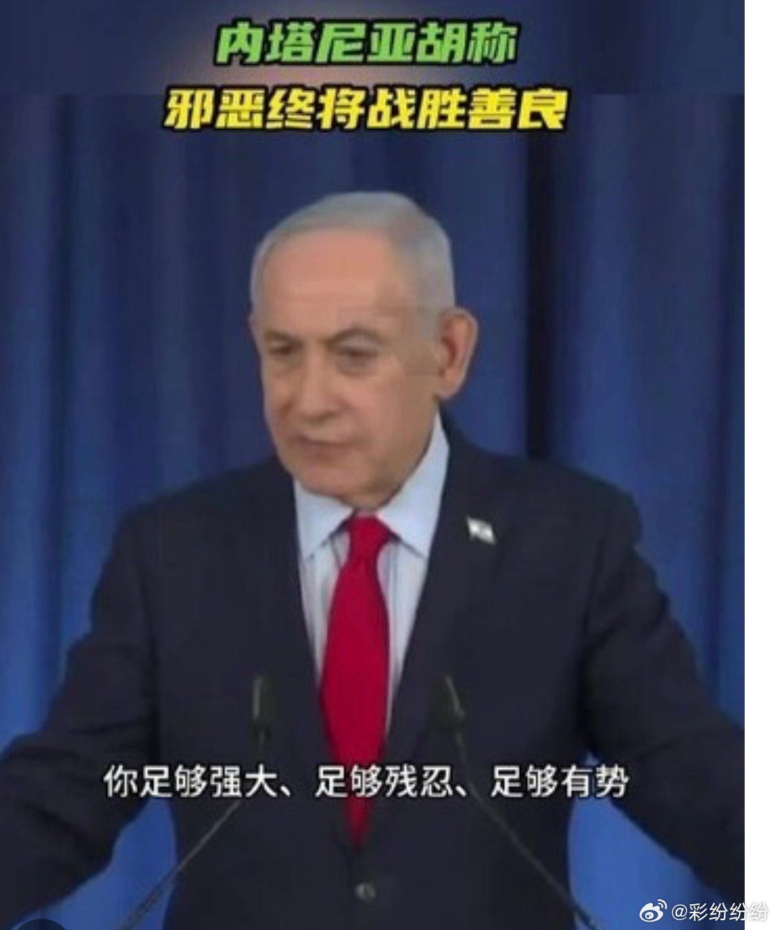“只要你足够强大、足够残忍、足够有势,邪恶终将战胜善良,侵略会战胜温和,你别无选择。” 以色列总理内塔尼亚胡在新闻发布会上如是说。 这是什么邪恶言辞。 连特没普都没胆子敢这样乱说吧,起码人家还知道装一下,内塔尼亚胡是装也不装了:我就是坏,就是邪恶怎么了。 好不要脸。 内塔尼亚胡就是个战争狂人,世界和平绊脚石,将来的历史书上,内塔尼亚胡一定会臭名昭著,被钉死在历史的耻辱柱上。 快来个导弹碎片收了他吧,这种人早该被清算了,他的活着对全人类都没有好处。内塔尼亚胡竟称邪恶终将战胜善良