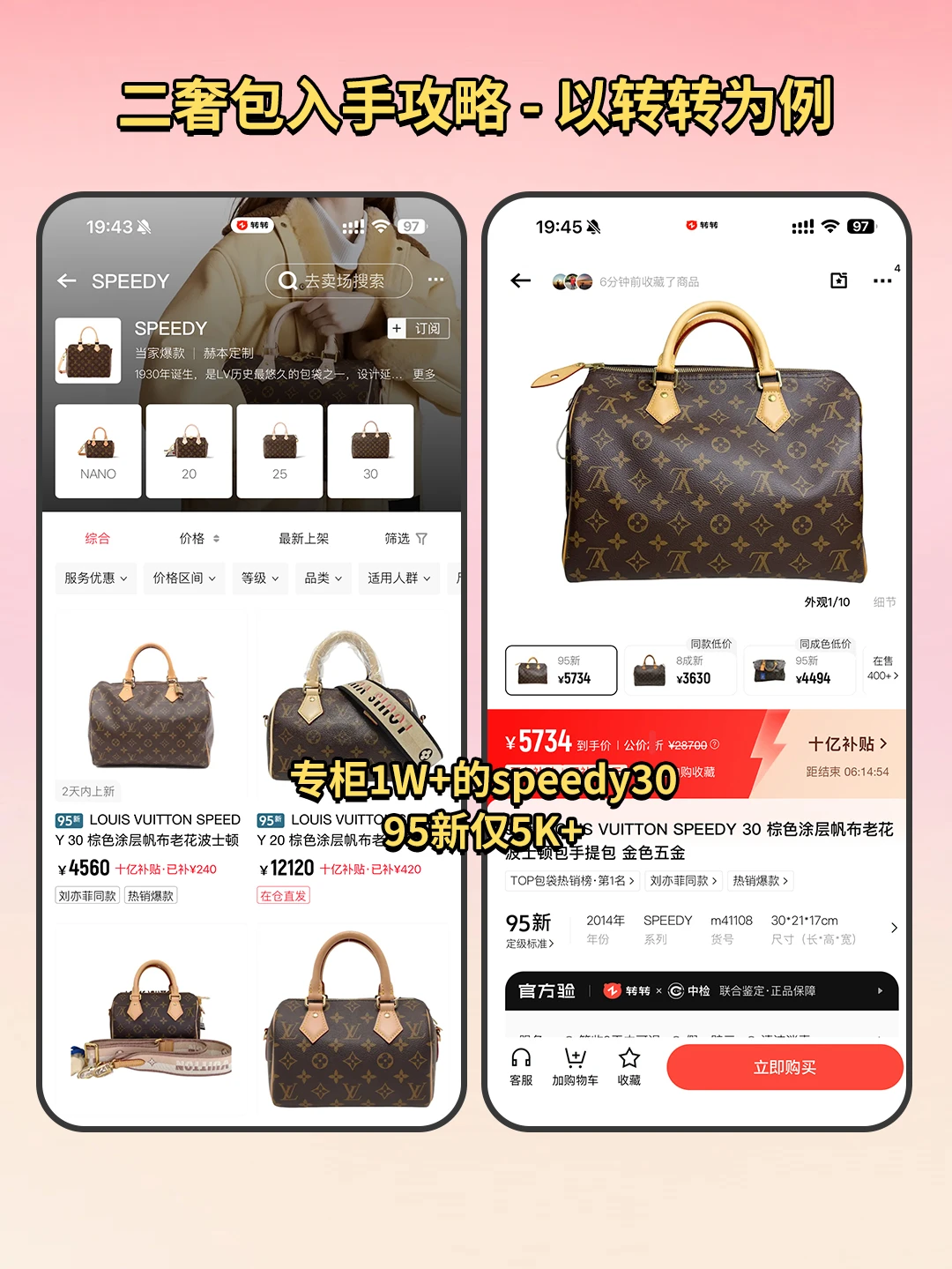 我个人比较常用转转,最近在上面淘到了一只LV中古包,成色比我想象中还要好!实拍图清晰,小划痕都拍得很清楚,拿到手完全没有落差感!物流也快,两天到手,检查完直接背出门,简直不要太香!