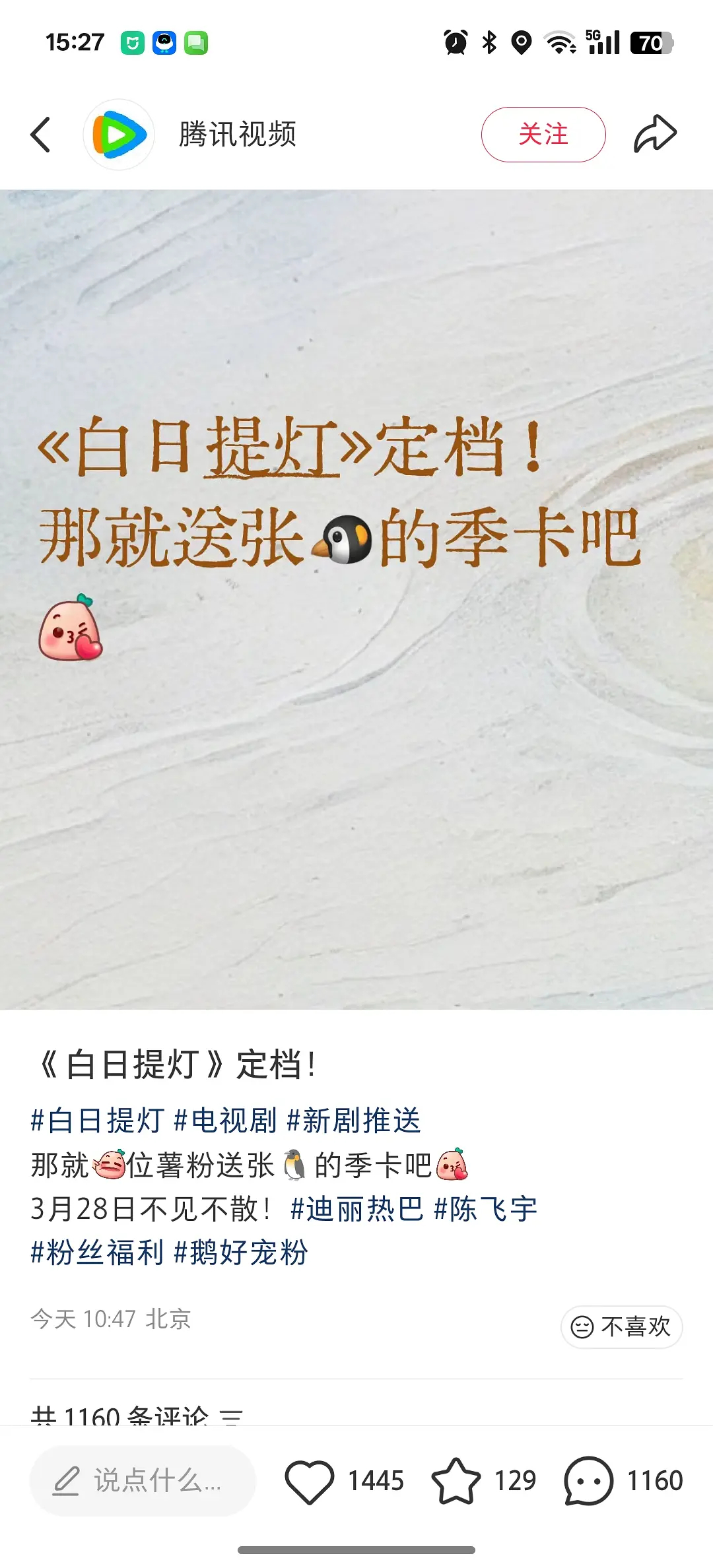《白日提灯》抖10w“想看”,🐧送600云包场,🍠定档就送一张季卡,扣不抠门 给整一个99999免费日卡呗1张季卡vs99999张日卡腾讯包场白日提灯