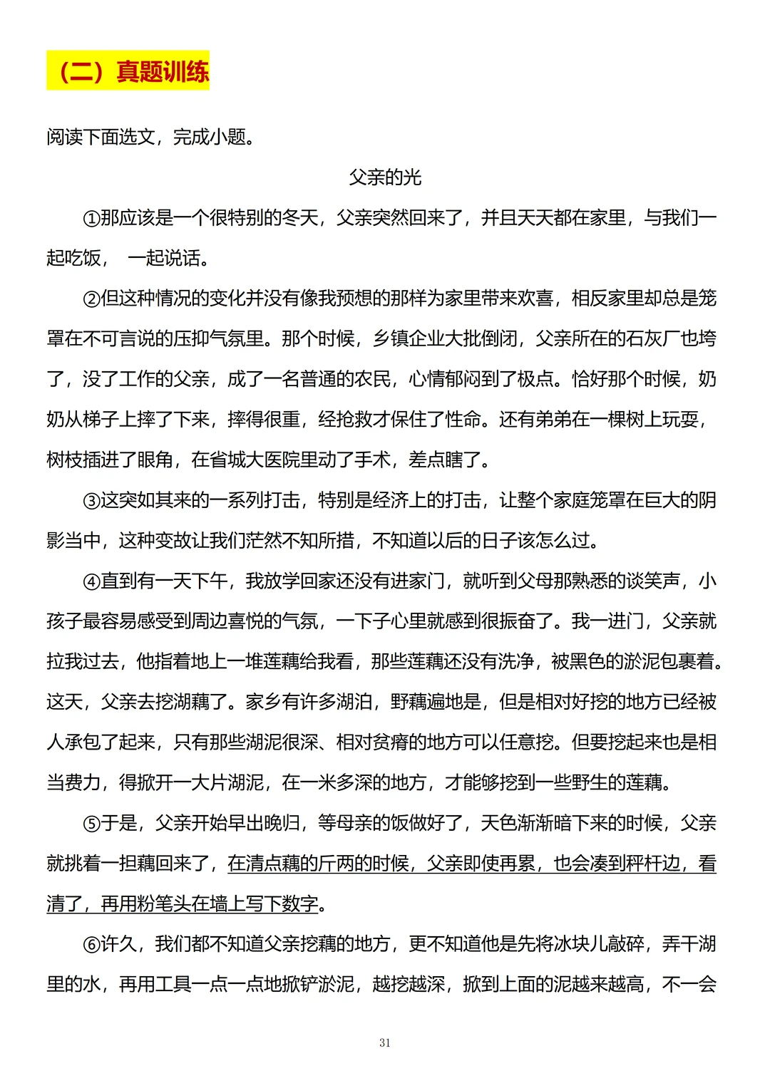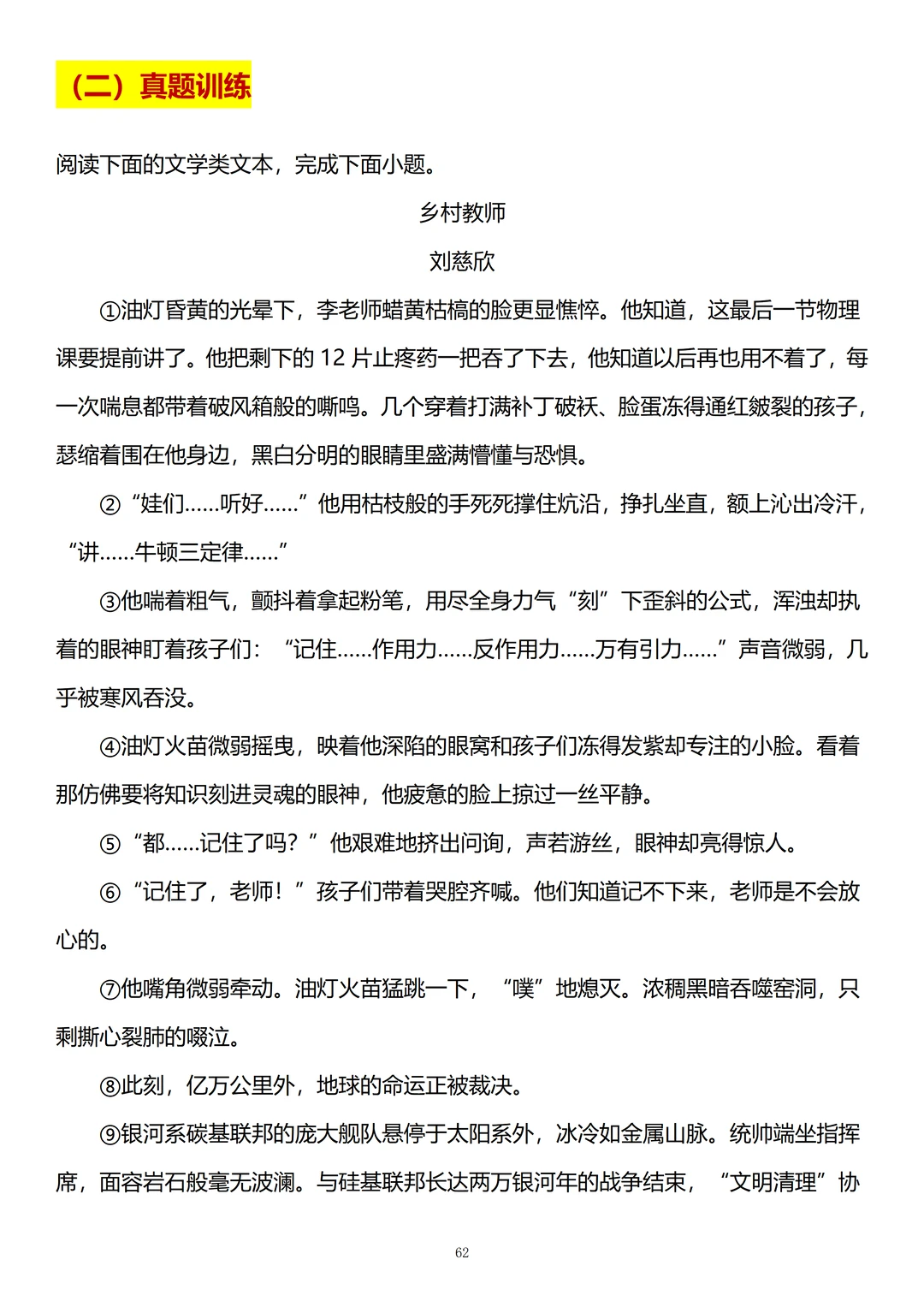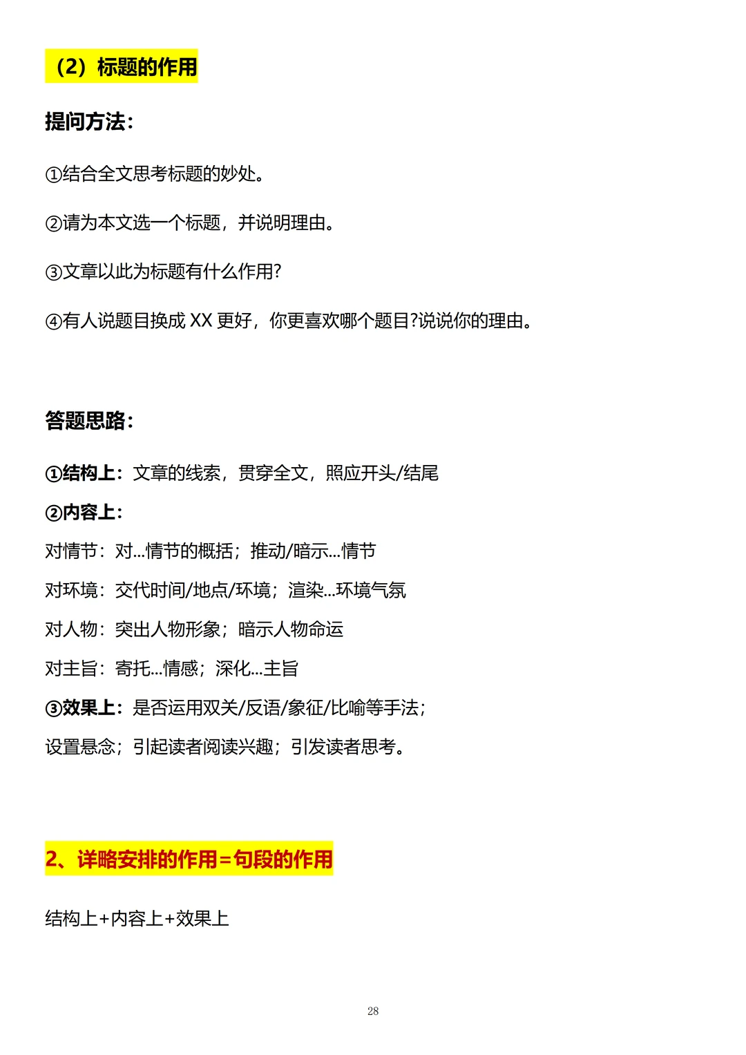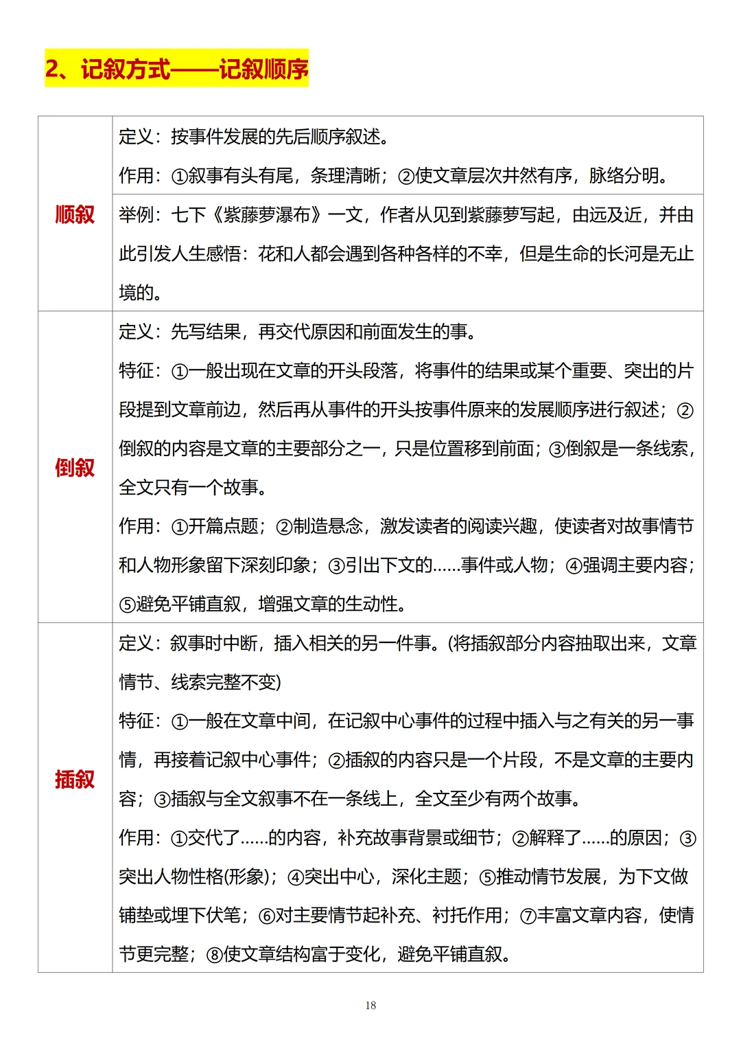 掌握直接/间接抒情、顺叙/倒叙/插叙; 句段作用题(结构+内容+效果),主旨题(抓题目、搭框架)。