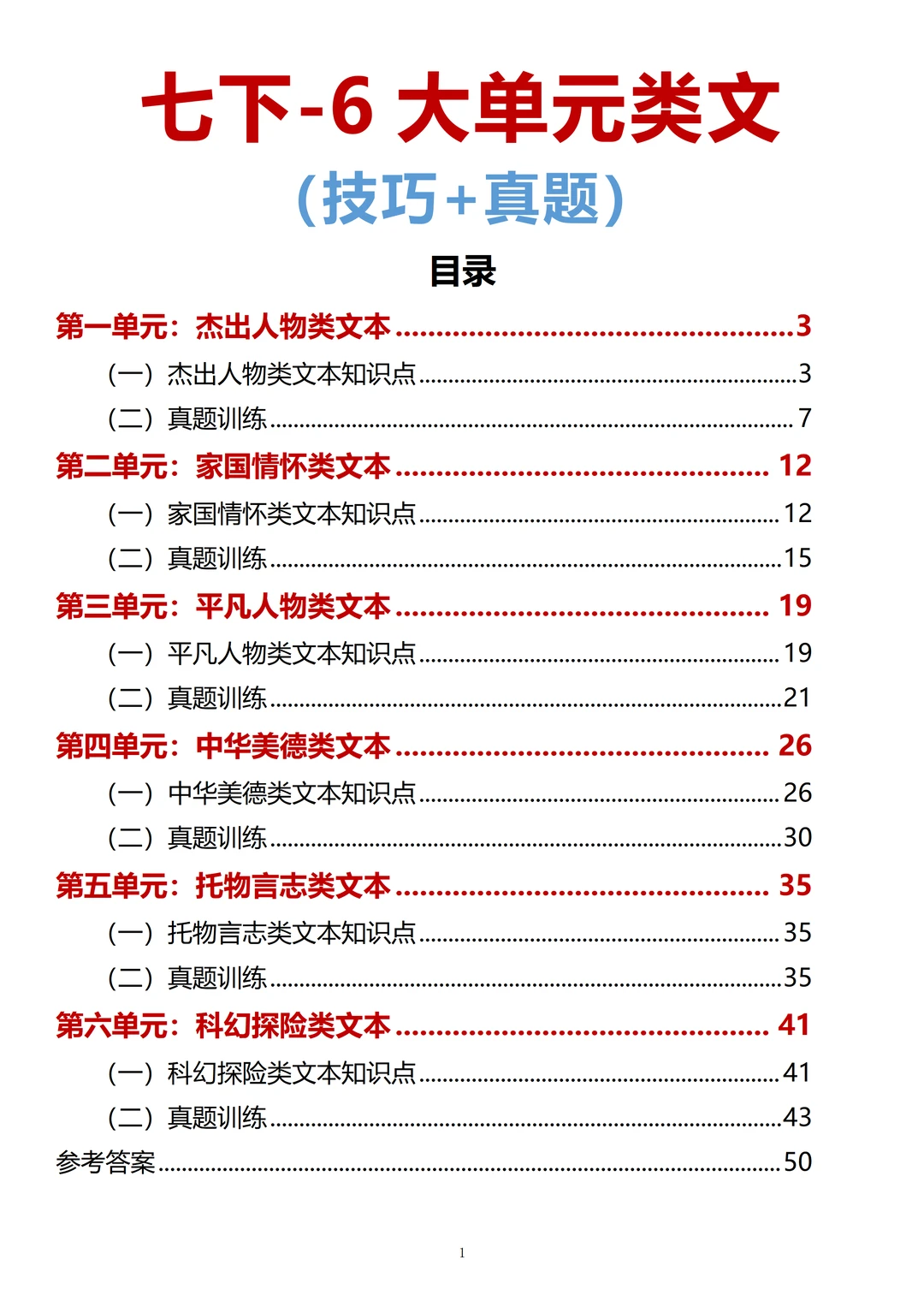 [火R]超全!七下语文6大单元主题类文阅读汇总!