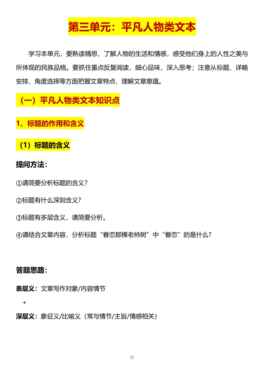 [点赞R]我帮大家汇总了每个单元需要掌握的文本知识点以及单元类文阅读题 建议家长们打印起来,让孩子看完知识点再限时训练!