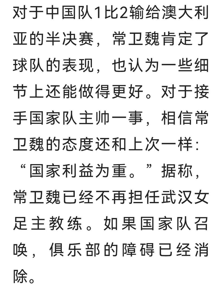噫噫,常卫巍真沉不住气,继去年底接任女足主帅成为笑话之后,近A在风口上又接了关于